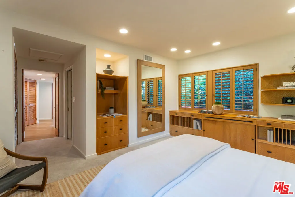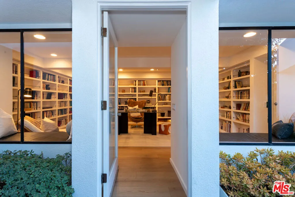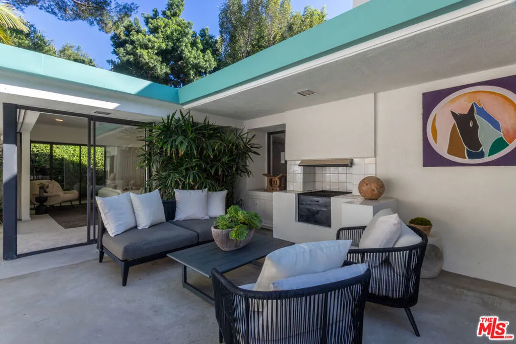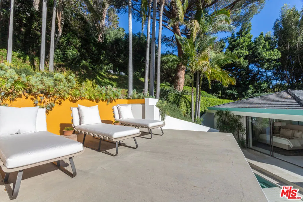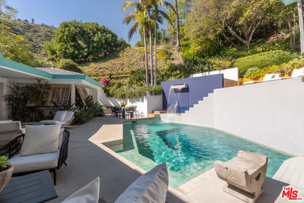 Offered for the first time in over 40 years, this thoughtfully restored home is set above the street and up a private drive in the coveted Outpost Estates, and provides exceptional privacy, design, and scale. Originally built in 1951 by Douglas McLellan & Associates and reimagined by architects Luis Ortega (1978) and Mark Enos (1986), the changes were inspired by Mexican architect Luis Barragan with warm, modern livability. The property has been featured in numerous fashion and editorial photos, including primary work by Herb Ritts, a reflection of its distinctive design and visual appeal. The main residence includes approximately 2,211 square feet with 2 bedrooms and 2 baths, featuring clean lines, preserved period details, thoughtful updates throughout, and a seamless indoor-outdoor flow. Natural light moves effortlessly through the interiors, opening to inviting outdoor spaces designed for both entertaining and retreat. Set on an expansive approximately 19,000 square foot lot, the grounds are anchored by terraced gardens, an architectural pool, connected spa, and a striking waterfall, along with thoughtfully composed outdoor areas that enhance the property's indoor-outdoor lifestyle. A lower level of approximately 600 square feet is a flexible space, currently utilized as a home office with a three-quarter bath and a temperature-controlled wine cellar. It is well suited for a third bedroom or simply additional living space. This is a rare offering that balances architectural significance, extreme privacy, and modern lifestyle in one of the most desirable pockets of the Hollywood Hills.