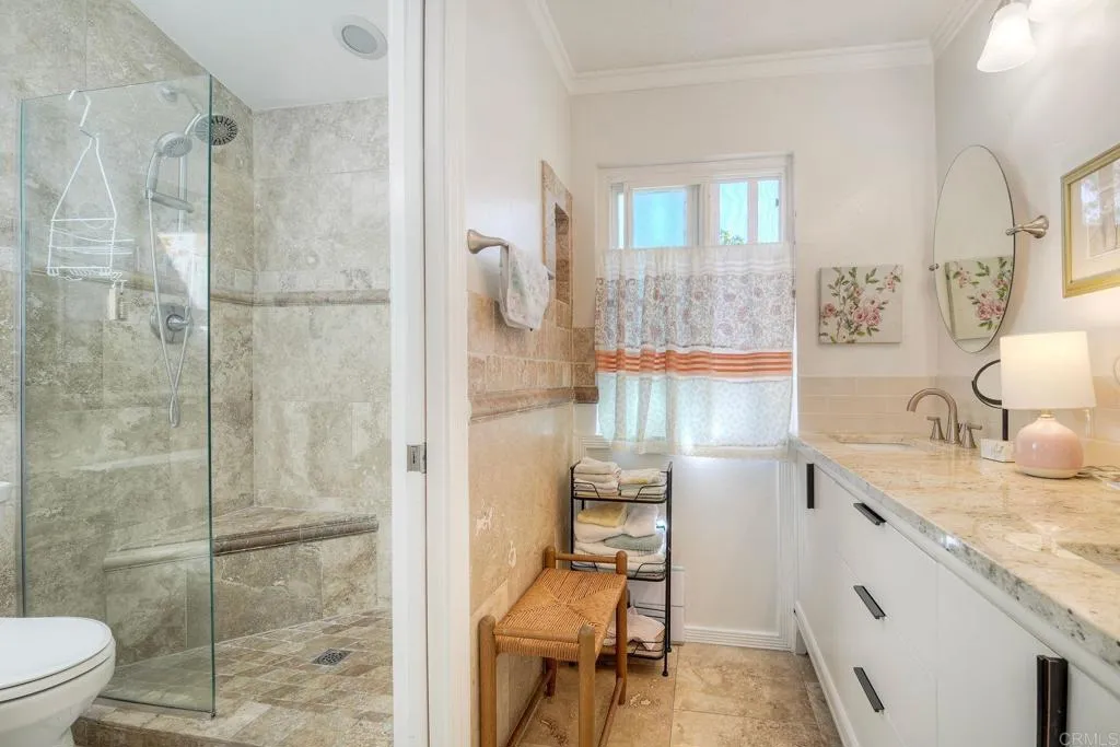 Welcome to this wonderful duet single-family home in Escondido, where flexible living meets timeless charm. Enter through a private atrium to a sun-drenched retreat for year-round enjoyment. This thoughtfully designed reverse two-story plan places the bedrooms on the lower level and the Primary suite on the main level, offering a unique and functional layout. The main living area impresses with a soaring ceiling and a seamless flow to a private deck overlooking a lush canopy of trees and hillside views. The beautifully appointed kitchen showcases a statement copper sink, a waterfall quartz countertop, and abundant storage. A dining room bar counter seats three comfortably, perfect for casual meals or entertaining. The main level is home to the Primary suite, a second bathroom, and a flexible den. The lower level offers a family room, an ensuite bedroom, and a third bedroom ideal for a home office. The family room gives access to a private patio. A two-car garage rounds out this home with generous storage space. Whether you prefer single-level or two-story living, this home effortlessly adapts to your lifestyle. The community features a pool, spa, and two tennis courts.