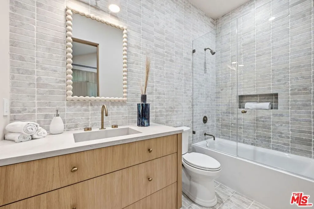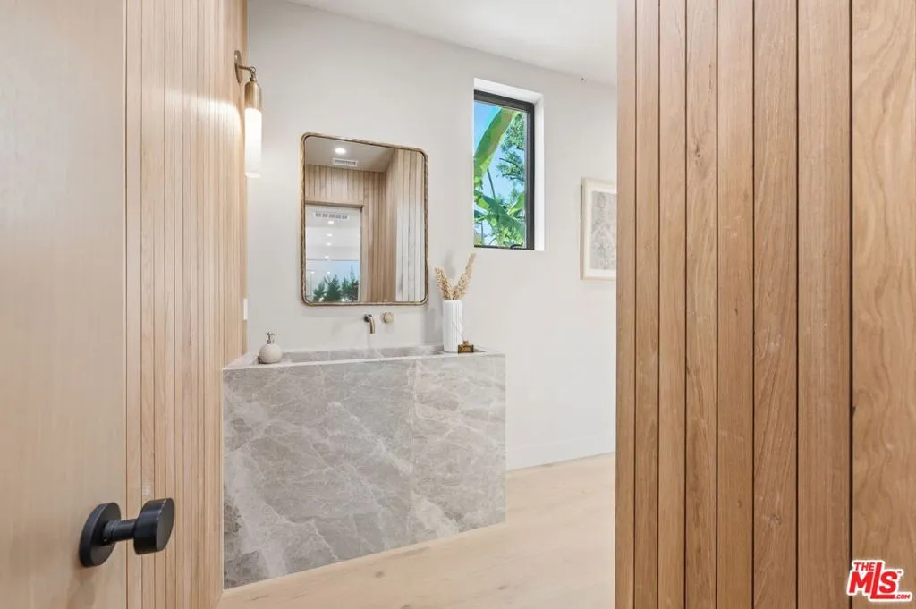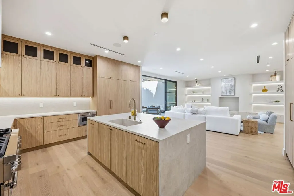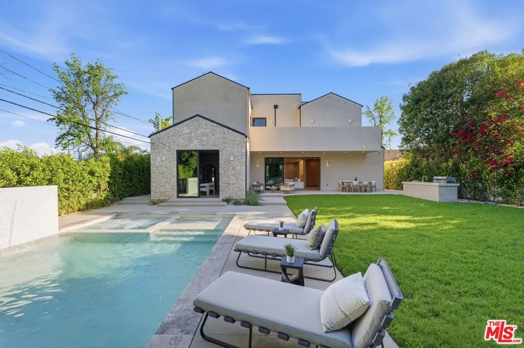Modern organic newly built home on a prime Encino lot of over 10,000 sq ft, this refined farmhouse blends timeless architecture with warm, upscale design. Thoughtfully crafted with Roman clay plaster walls, soaring high ceilings, and an impressive open-concept layout, the home offers both comfort and sophistication. The main living spaces are designed for seamless indoor-outdoor living, filled with natural light and ideal for entertaining. At the center, the chef's kitchen features custom oak cabinetry, top-tier appliances, and an oversized island with breakfast seating. The primary suite is a true retreat, complete with a private balcony overlooking the yard, a spacious walk-in closet, and a spa-inspired bath. Home also offers a 1-bedroom ADU with its own kitchenette providing flexibility for guests, a home office, or extended living. The expansive backyard is a private oasis with a sparkling pool and spa, abundance of grass area and a built-in BBQ with bar seating, perfect for hosting or entertaining. Situated on a quiet tree lined street located near Encino's premier shopping, dining, and top-rated schools.