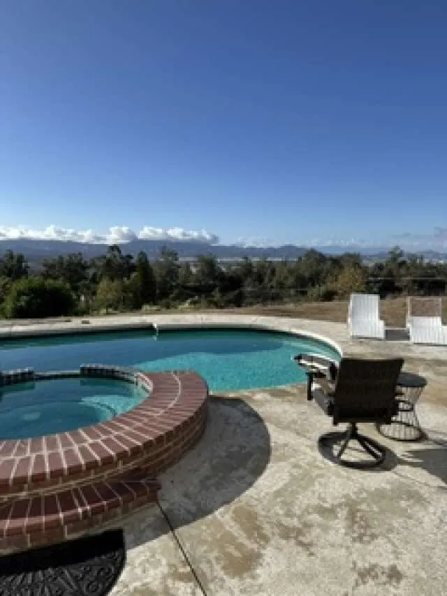 Custom home 4 bedroom 4 and 1 half bath 3811 square feet 960 sq ft 4 car tandem garage pool/spa salt system half acre view lot above east highland ranch. Home is one of a kind plans on site owner builder with many upgrades like a 400 amp elecrical panel easy ad on for additional bedroom in garage and 2 space ADU in back yard if desired. Master suite is downstairs library and game room open floor plan 20ft ceilings in great room covered patio fire pit balcony etc... too many upgrades too mention. 180 degree view of valley a must see