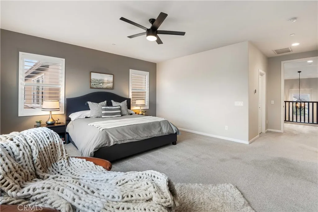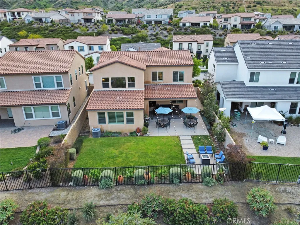 If VIEWS and privacy are what you want, look no further! This great house is located in the gated community of Aliento in Santa Clarita. It features 2,650 square feet of living space with an open floor plan that connects the kitchen, dining, and living areas. The kitchen has a huge oversized Island with granite counter tops. Downstairs there is a bedroom with a full bathroom next to it. There is a 240 volt and 50 amp outlet for EV charging outlet by the electric panel. Upstairs there are 3 bedrooms 2 full bathrooms, a good size loft which can be a 5th bedroom if desired, plantation shutters and remote-control window shades throughout the house. It has leased solar panels to save on power costs. The backyard has a nice covered patio with recessed lights, string lights, and hookups for a gas built outdoor kitchen and pool. It's 1 minute away from Golden Oak elementary school and the community center which includes a gym, clubhouse, pool for adults, pool for little kids, splash pad, dog park, hiking trails, and private park. Minutes away from Trader Joe's, target, Costco, & freeway access. Don't miss a chance to live in Santa Clarita's best kept secret.