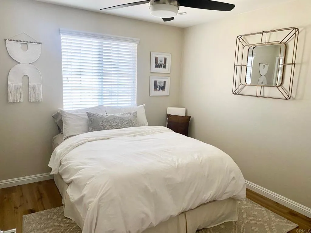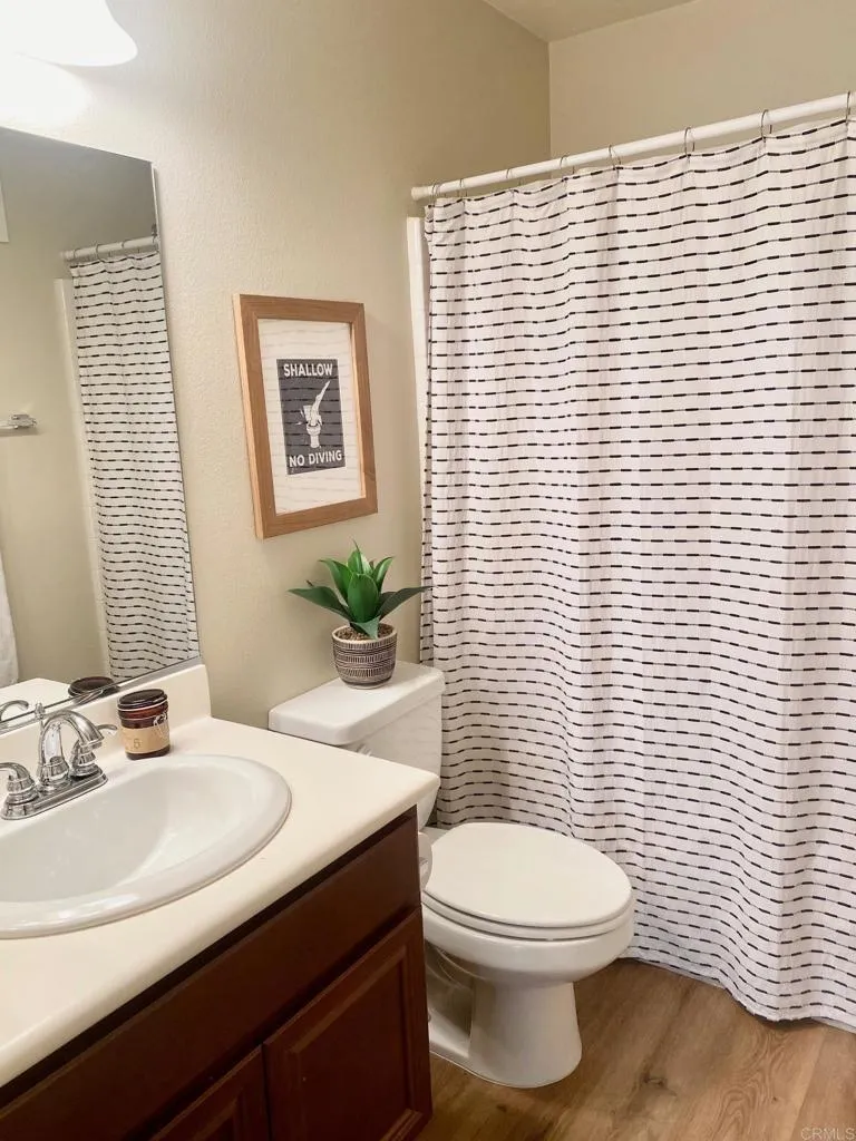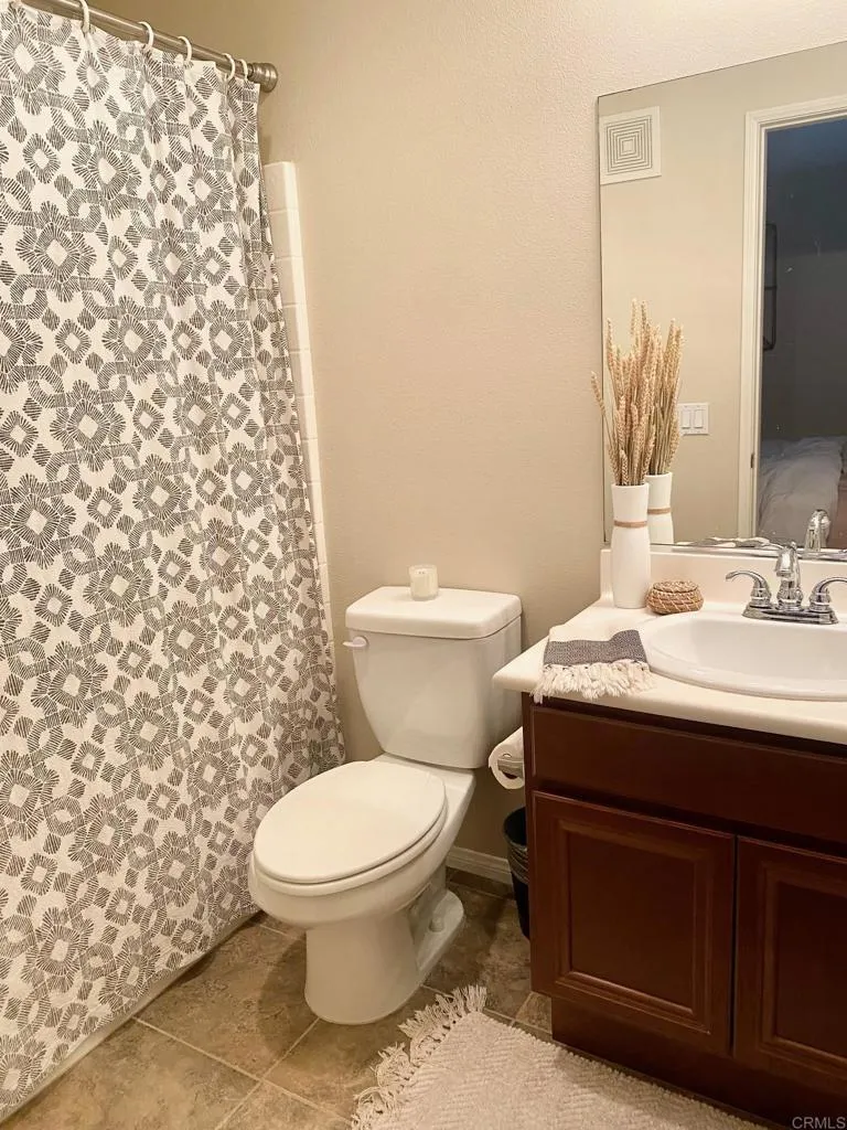 Welcoming and spacious townhome with no one above or below is warm and inviting with high ceilings, upgraded luxury vinyl planks, recessed lighting and fresh paint, this 3 bedroom and 3 bath home will accommodate most living situations with each room accessing a private bathroom. Stepping into the home with a large entrance and leading up the stairs to an open kitchen that overlooks the light and bright dining and living room or down a small hall into a guest bedroom and bathroom. The kitchen has lots of storage, a breakfast bar and includes refrigerator, stove, dishwasher and microwave. Off the living room is a balcony that overlooks open space with room for small table, chairs and BBQ. On the upper level are 2 bedrooms each with private bathrooms, and the main bedroom is extra large with his and hers closet. There is lots of storage throughout, ceiling fans in the bedrooms and living room and laundry room with washer and dryer. Completing the home is a 2 car tandem garage with built-in cabinets for storage. Located in the Treviso with community pool, spa and clubhouse. Easy access to the 52, Mission Hills Trails and much more.