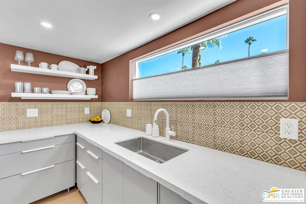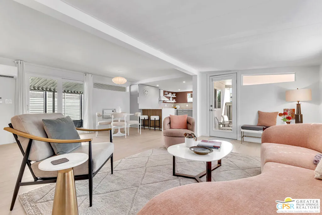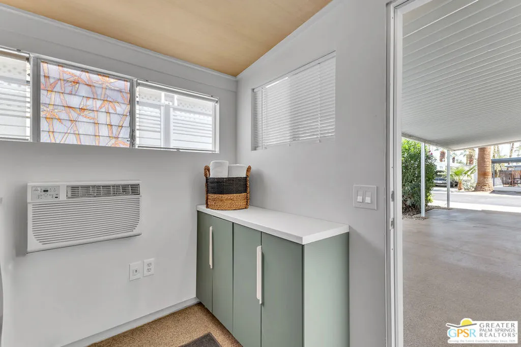 Stunningly Updated Park Home with Artistic Attention to Detail! Welcome to this beautifully transformed 2-bedroom, 2-bath residence in the highly sought-after Sahara Parka 55+community with rent control! Updated plumbing and electrical systems, insulation for energy efficiency, and stylish flooring throughout. Home features a beautifully remodeled kitchen with a standout stove and modern appliances. The separate laundry room adds convenience. Relax or entertain outdoors on the private side and back patios, adding valuable extended living space. This home is ready fori ts new owner don't miss your chance to live in one of the friendliest communities in South Palm Springs.Park approval required.