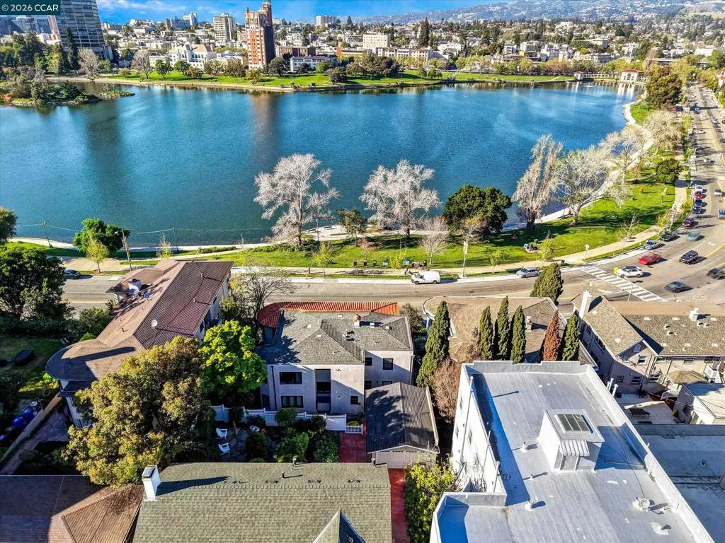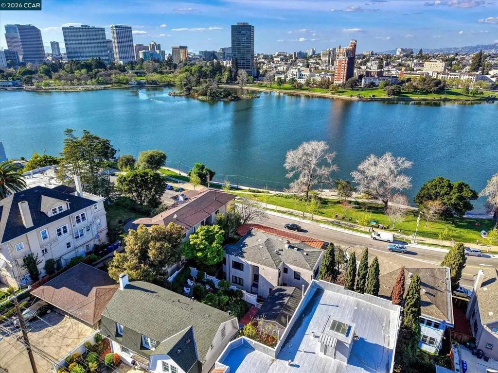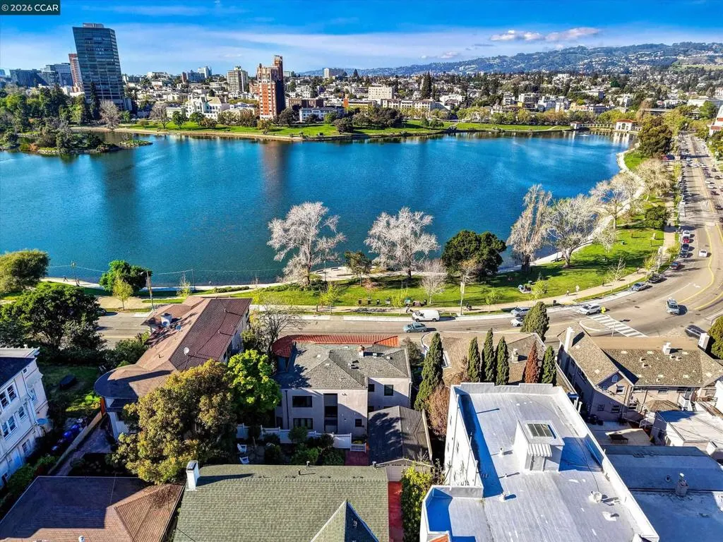 Stunning lakefront duplex with unmatched charm. A remarkable opportunity to own a gorgeous duplex that boasts breathtaking views over Lake Merritt. This beautifully renovated Mediterranean-style masterpiece perfectly combines classic elegance with modern amenities, offering an exceptional living experience. Step inside to find a chef's kitchen, paired with tastefully remodeled bathrooms that exude a contemporary flair. The thoughtful layout features spacious interiors adorned with pristine hardwood floors throughout, ensuring both comfort and style in every room. Both units are 2 bedrooms and 2 baths with options for a den, family room, or a third bedroom. Dramatic windows showcase panoramic lake views, perfect for watching the sunset. The upper unit includes a charming Juliet balcony for enjoying morning coffee with a view. In addition to the two upper units, a bonus space on the 3rd bottom level has been converted into a studio with a separate entrance. Whether you're seeking a unique family residence or an exceptional investment opportunity in the vibrant Oakland market, this duplex is poised to impress. Don’t miss your chance to make this extraordinary property your own—where the beauty of Lake Merritt meets the charm of a carefully crafted home.