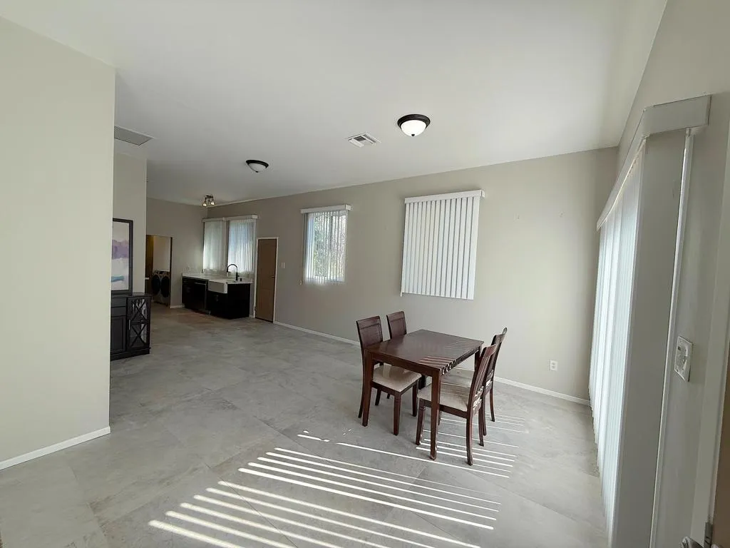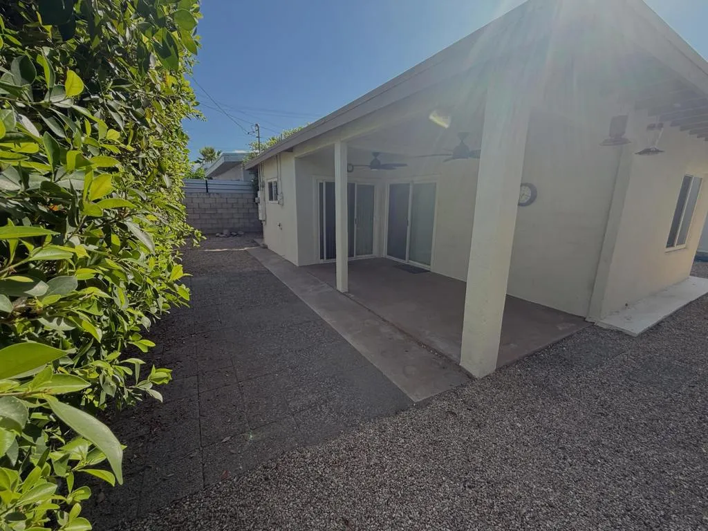 Warm Sands home featuring an open-concept layout. The kitchen offers sleek cabinetry, quartz countertops, stainless steel appliances, and ample storage, flowing seamlessly into the spacious living and dining areas which are ideal for entertaining. Bathrooms have been improved, including a walk-in shower with designer tile. A large indoor laundry area with additional cabinetry and workspace adds everyday convenience. Step outside to a private, low-maintenance backyard with a covered patio--perfect for relaxing or hosting gatherings. Conveniently located near shopping, dining, and local amenities.