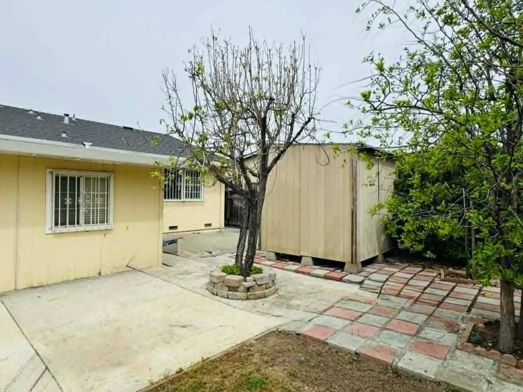 Nestled on a quiet cul-de-sac, this property sits on an expansive lot with excellent ADU potential. The backyard offers a peaceful retreat with mature fruit trees and a serene koi pond, creating a relaxing outdoor setting. Inside, the home features a spacious open living room with vaulted ceilings, complemented by double crown molding and recessed lighting throughout. The bright, functional kitchen provides ample cabinetry and flows seamlessly into a large dining area, ideal for everyday living and entertaining. An in-law suite with a private entrance, full bath, and kitchenette offers added flexibility for extended family or potential rental use (permits unknown; buyer to verify). Additional highlights include a large storage shed and generous outdoor space with room to expand. Some interior photos are virtually staged with furniture, décor, and window coverings; wall colors and flooring remain unchanged.