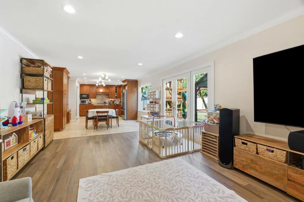 This spacious 5-bedroom, 3-bath home offers 2,347 sq. ft. of living space on a 6,050 sq. ft. lot within the Morgan Hill Unified elementary school district. The kitchen features granite countertops, a gas built-in oven range, microwave, dishwasher, refrigerator, island, garbage disposal, ice maker, exhaust fan, and hood over the range, providing ample workspace and appliances for everyday cooking. Flooring throughout includes hardwood, stone, and travertine, complementing the open beam, vaulted, and high ceilings with motorized skylight and garden a window. The family room includes a wood-burning fireplace, adding warmth and ambiance. Laundry is conveniently located in the utility room and equipped with High End washer, dryer, and 220V electric hookup. Additional amenities include a formal dining room, breakfast nook, and 3 Separate heating and cooling zones, as well as energy-efficient features such as solar power ( lease is fully paid off ) and double-pane windows. The home also includes a 3-car garage with Level 2 electric vehicle charging hookup. This exceptional home has over 350k with Permitted upgrades. Come take a look.