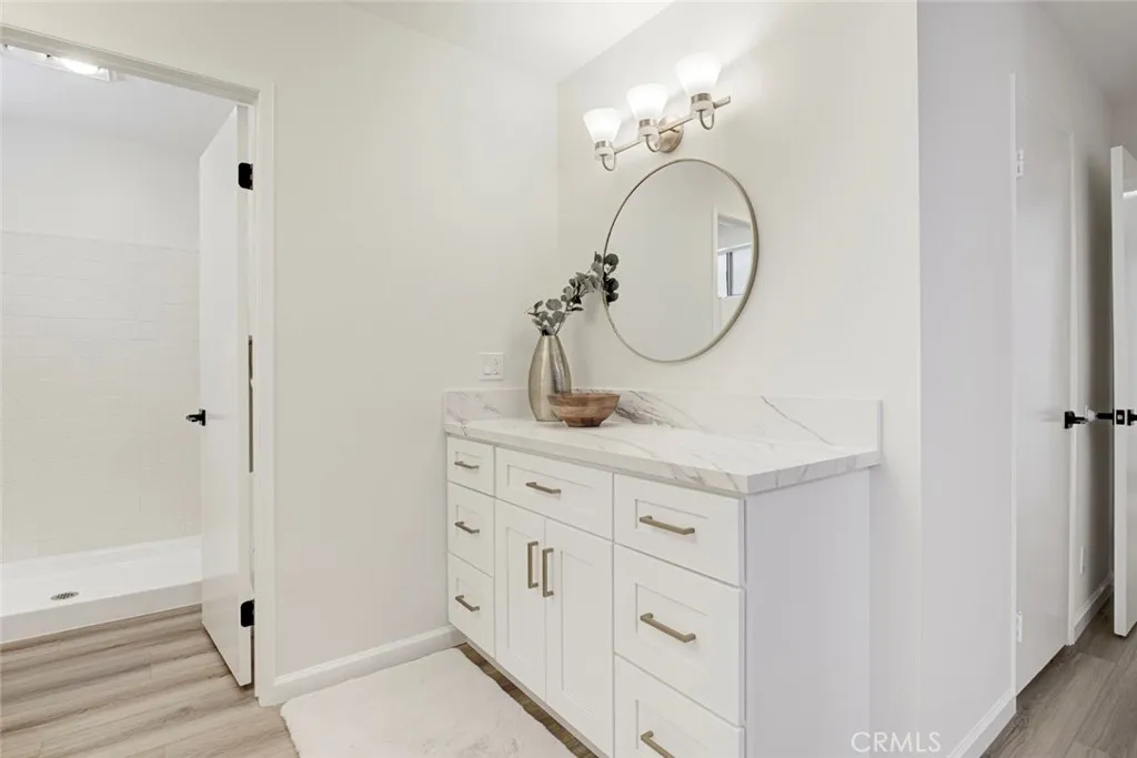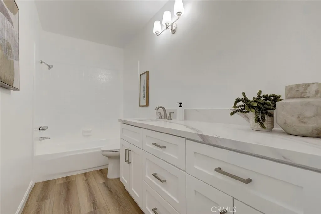 Welcome to this beautifully remodeled 4-bedroom, 2-bathroom home, ideally situated on a quiet cul-de-sac in one of Burbank’s most desirable neighborhoods. Thoughtfully updated from top to bottom, this residence seamlessly blends modern finishes with comfortable living. Step inside to a warm and inviting living room, featuring a charming brick fireplace and a large picture window that fills the space with natural light. The home flows into a formal dining area, highlighted by a stylish new chandelier—perfect for both everyday living and entertaining. The fully renovated kitchen offers quartz countertops, soft-close cabinetry, brand-new appliances, a spacious pantry, and a cozy breakfast nook area. Just off the kitchen, an expansive family room/den opens through a large sliding glass door to the backyard, creating a seamless indoor-outdoor living experience. The primary suite includes a thoughtfully designed double vanity setup, with one sink and an additional dedicated space for personal use, along with a large sliding door providing direct access to the backyard. Additional highlights include updated flooring throughout, fresh interior and exterior paint, modern lighting fixtures, and upgraded bathroom vanities. The backyard is designed for low-maintenance enjoyment, featuring a clean combination of concrete and decorative rock—ideal for gatherings and outdoor entertaining. The front yard has been newly landscaped with curated plants, flowers, and mature trees that enhance both curb appeal and privacy. A spacious two-car garage with laundry hookups and ample space for storage completes the home. Located in a prestigious Burbank neighborhood, this turnkey property offers privacy, comfort, and convenience—all in a serene setting.
