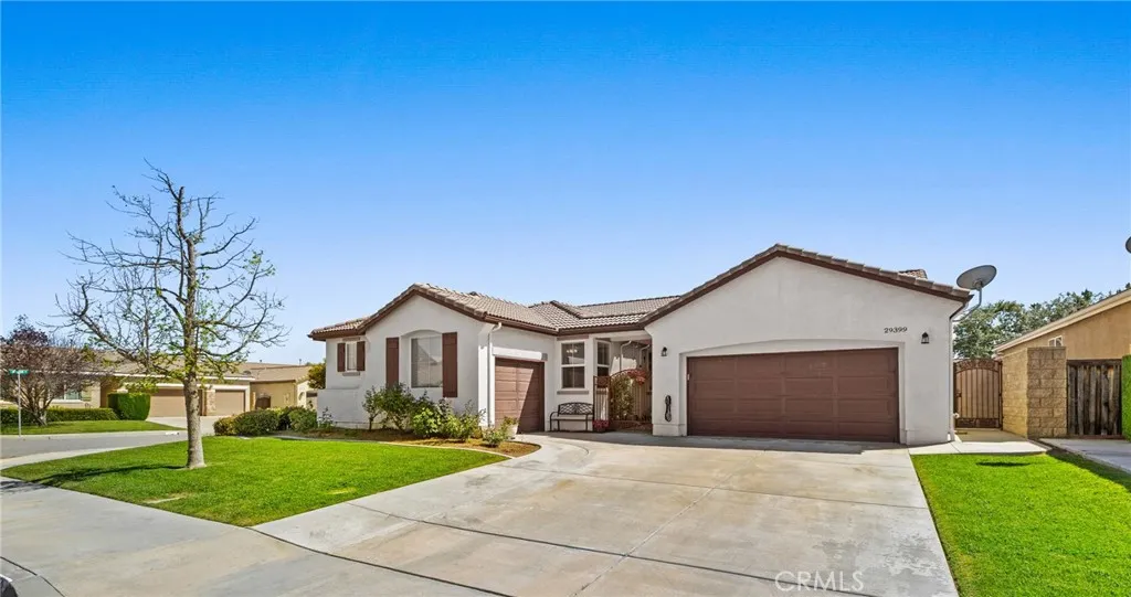 Imagine being able to walk to the Lake every day! Experience Resort-Style Living in the highly sought-after Heritage Lake Community in the growing City of Menifee. This beautifully maintained 4-Bedroom, 2.5-Bath Single Story Home offers 2,325 sq ft of Living Space on an expansive 8,000+ sq ft Lot, showcasing true pride of ownership inside and out. From the moment you walk in, you’ll notice the thoughtful Upgrades and Attention to Detail, including Ceramic Tile Flooring, a Built-In Surround Sound System (Inside and Out), and a Spacious Functional Layout perfect for Everyday Living and Entertaining. The heart of the home is the Oversized Kitchen featuring Abundant Storage, a Built-In Desk, and Double Oven...ideal for hosting gatherings or busy family life. The inviting Living Room is complete with a cozy Fireplace and custom Built-In Cabinetry. The well-designed floor plan offers privacy with the large Primary Suite situated on one side of the home...featuring 2 Separate Walk-In Closets, Dual Sinks, and a separate Soaking Tub and Shower. On the opposite side, you’ll find 3 Generously-Sized Secondary Bedrooms, including 1 equipped with a Queen Murphy Bed and Built-In Bookcase...perfect for guests or a home office. Step outside to your Private Backyard Retreat, complete with Alumawood Patio Cover, Gas Firepit, Block Wall Fencing, and Dual Wrought-Iron Side Gates...ideal for both Relaxing and Entertaining. Highlights include a Whole-House Water Treatment System, a NEWER Water Heater and Double Garages...a Standard 2-Car and a Separate 1-Car ideal for Storage, a Gym or Flex Space. Living in Heritage Lake means enjoying a true Resort Lifestyle centered around a Private 25-Acre Lake and Clubhouse, with amenities including 2 Jr. Olympic-Sized Pools, a Splash Park, Playgrounds, Scenic Walking Trails with Fitness Stations, Paddle Boating, Catch-and-Release Fishing, and a full calendar of Community Events year-round. Priced to sell and ready for its next owner...this one won’t last long! Schedule your private showing today.
