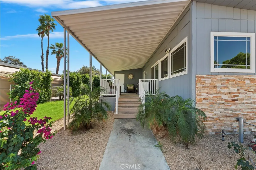 Welcome to this 3-bedroom, 2-bathroom manufactured home in Las Palmas de la Quinta. The home features a kitchen with cabinets, countertops, and tile flooring, providing a practical space for everyday meals. The primary bedroom includes a private bathroom, while the additional bedrooms offer comfortable space and natural light. Sliding doors provide additional natural light and lead to a patio, offering an inviting space to enjoy the afternoon. Las Palmas de la Quinta offers multiple pools, spas, a clubhouse, paved walkways, and well-maintained common areas. The home is conveniently located near shopping centers, restaurants, and main streets, making daily errands simple and accessible.