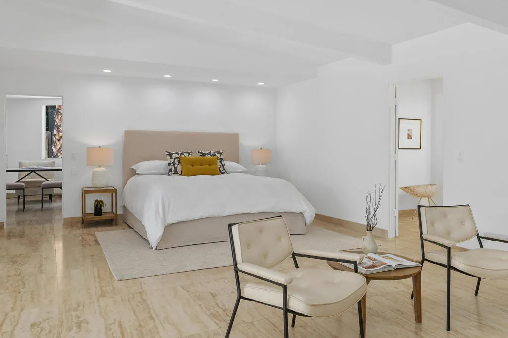 Welcome to an extraordinary offering in Thunderbird Estates, one of Rancho Mirage's most exclusive and private enclaves, comprised of just 28 residences. This iconic desert modern home, originally designed in 1955 by renowned mid-century architect William Cody, spans approximately 4,821 square feet with 4 bedrooms and 4 baths, gracefully positioned along the 18th fairway of Thunderbird Country Club.Walls of glass--true to Cody's signature style--frame breathtaking panoramic vistas of three majestic mountain ranges while seamlessly blending indoor and outdoor living. A complete interior remodel showcases refined, high-end finishes and meticulous attention to detail, delivering a move-in ready residence tailored for the most discerning buyer. Grand-scale rooms are flooded with natural light, creating an ambiance that is both sophisticated and inviting.Outdoors, the estate is enveloped by mature, low-maintenance desert landscaping, offering a serene and private setting ideal for poolside entertaining under the desert sky. Rich in history, the home was originally built for Lawrence ''Red'' and Jessie Oakes and was featured in Architectural Digest in 1962. Thoughtfully and sensitively renovated, it honors its architectural heritage while embracing modern luxury--ready for its next 70 years.Located just a short stroll from the clubhouse, residents who choose to join Thunderbird Country Club enjoy premier amenities and a storied legacy once shared by Hollywood icons and industry leaders. Having been cherished by its current guardians for over two decades, this is a rare opportunity to own not just a home, but an unparalleled lifestyle in one of the desert's most coveted communities.