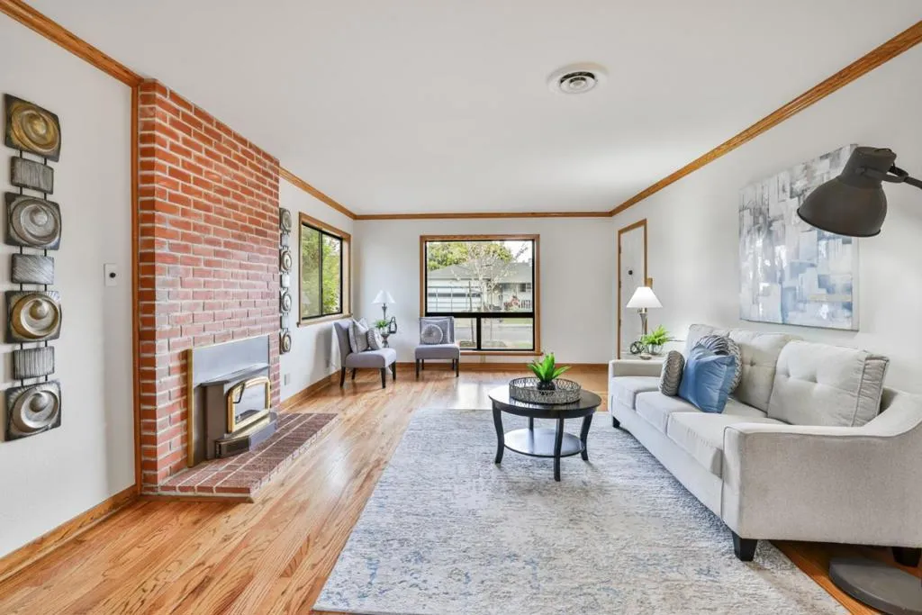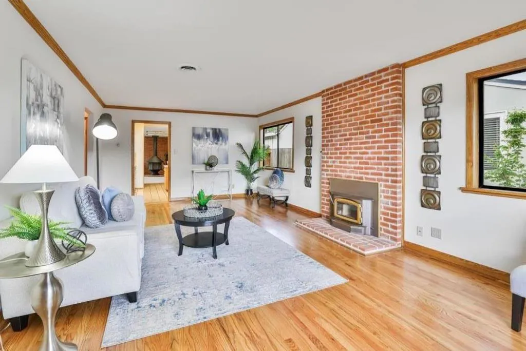 Santa Clara's highly sought after desirable Mariposa Gardens neighborhood, served by in-demand Sutter Elementary. This home is bathed in natural light and showcases beautifully refinished hardwood floors, elegant crown molding and a well-designed floor plan ideal for everyday living and entertaining. The gourmet kitchen features a central island, gas stove, Corian countertops, pantry and space for a refrigerator plus a separate freezer or wine refrigerator. The expansive family room is a warm, inviting space with a cozy free standing wood fireplace and wall-to-wall built in shelving. The private primary suite, located at the rear of the home, is a true retreat with three spacious custom closets, drawers, mirrored doors, double sink vanity, private toilet room and excellent storage. A secondary bedroom with a Murphy bed provides flexible space for an office/guests. Recent updates include fresh interior paint, new toilets & new vinyl plank flooring. Additional features include ceiling fans, central vacuum, wall insulation, copper piping, low maintenance backyard with deck, mature fruit trees, drip system and storage shed. Just steps from Mary Gomez Park & close to Central Park Library, Stans Donuts, shopping, major commute routes & top tech campuses. Enjoy Santa Clara low utilities