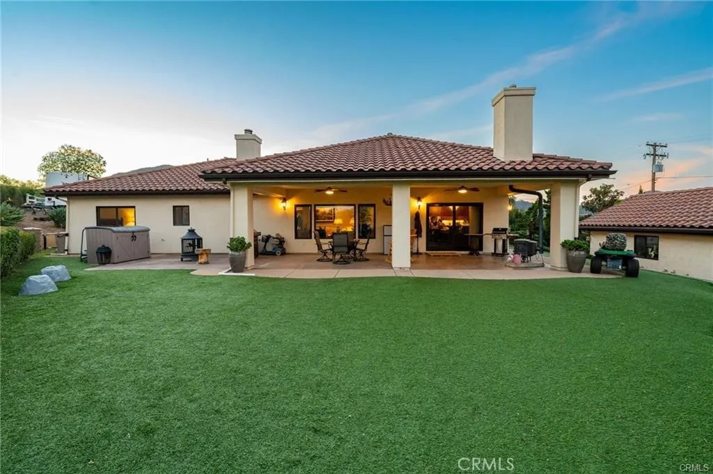 Welcome to this beautifully crafted custom home offering space, views, and versatility. Step inside to a spacious formal living room with vaulted ceilings, hardwood floors, and a wood-burning stone fireplace. The open layout flows into the dining area and kitchen, all positioned to capture scenic grounds and mountain views. The kitchen features stainless steel appliances, granite countertops, and custom cherry wood cabinetry with a large peninsula for added seating and prep space. A long private driveway leads past a corral and a productive mini orchard featuring tangerines, oranges, plums, jujubes, nectarines, apricots, figs, Fuji apples, Asian pears, persimmons, lemons, and avocados—providing nearly year-round enjoyment. The property is well laid out, mostly fenced, and supported by automatic irrigation and three rainwater holding tanks (1,550 gallons each reducing monthly water bills). Enjoy outdoor living under the covered patio with peaceful views, ocean breezes, and an outdoor pellet stove for year-round comfort. The backyard also includes a dedicated space plumbed for a future hot tub, along with a lighted, fenced area ideal for a play yard or dog run. Additional highlights include owned solar, RV parking with full hookups, and a private detached outbuilding with its own electric meter—ideal for a potential office, ADU, or workshop. Equestrian amenities include a corral, tack/storage room with power, and a nearby arena. Agricultural zoning allows for farm animals. Quality construction includes walnut flooring, solid wood doors, custom cabinetry, 10’ ceilings, wide hallways, dual water heaters (one solar-assisted), fire sprinklers, security system, and a whole-house generator. Located in the rolling hills of Fallbrook, just minutes to town, shopping, dining, and Temecula Wine Country—offering the perfect balance of privacy and convenience.