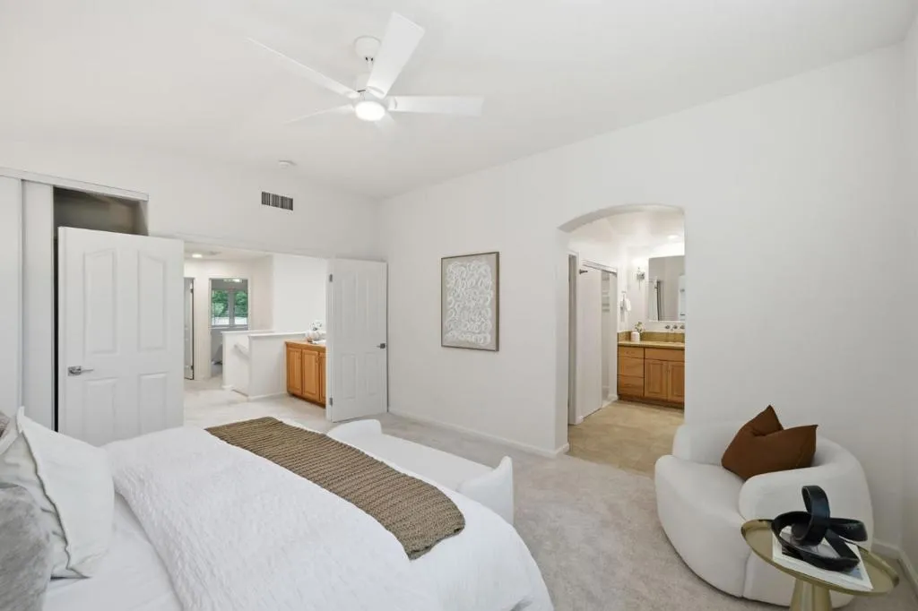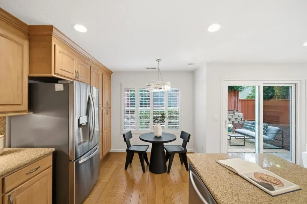 Welcome to this light-filled home in the highly desirable Mission San Jose neighborhood of Fremont. Offering approximately 1,918 square feet, this residence features soaring ceilings, abundant natural light, and a functional open floor plan designed for both everyday living and entertaining. Spacious living and dining areas flow seamlessly, creating a bright and inviting atmosphere. The kitchen offers a functional layout with stainless steel appliances and opens to a cozy family room with a fireplace and direct access to the backyard. Upstairs, the primary suite provides a comfortable retreat with dual vanities, while additional bedrooms offer flexibility for guests, a home office, or everyday living needs. Enjoy a private, low-maintenance backyardideal for relaxing or entertaining. Additional highlights include an attached two-car garage. Located in the Mission San Jose school district, near parks, shopping, dining, and major commute routes, this home offers comfort, convenience, and a sought-after location.