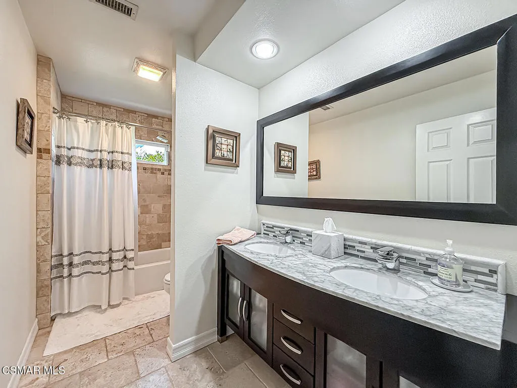 Located on a tranquil cul-de-sac in a wonderful neighborhood close to award-winning schools, excellent restaurants, shopping, and convenient commuter routes, this beautifully designed two-story home offers the perfect blend of craftsmanship and flexible living space. Boasting approximately 3,185 sq ft the thoughtfully designed floorplan provides both openness and versatility.Enter through the double doors into a spacioius foyer that leads to an open living area with soaring ceilings, a lovely fireplace, and a wall of glass featuring French doors and high windows that fill the home with natural light. A stylish bar with wine refrigerator elegantly separates the living room, dining room, and family room, creating a perfect space for entertaining.The large family room opens to the backyard through a sliding door, while the spacious dining room features a large window overlooking the yard and connects to the kitchen through a convenient serving bar. Throughout this main living area you will find beautiful wood floors and plantation shutters.The remodeled kitchen features custom cabinetry with pull-out drawers, two pantries, granite countertops, stainless steel appliances, a 5-burner gas cooktop with pot filler, double ovens (standard and convection), microwave/convection oven, and a large refrigerator.Also on the main level is a private office that could easily be converted to a bedroom, adjacent to a beautifully updated bathroom with a large shower and exterior access- ideal for guests or future pool use. A separate laundry room includes a sink, generous storage, and a convenient ''Costco closet''. The two car garage offers additional storage.Upstairs the flexible floorplan continues with a huge loft perfect for a bonus room, playroom, game room, office, or hobby area, and it could easily be enclosed to create an additional bedroom. The spacious primary suite feautures two walk-in closets, a private balcony, and a large bathroom with dual sinks, a soaking tub, and separate shower. Two additional generously sized bedrooms share an updated bathroom with dual sinks and a tub/shower combination.The peaceful and private backyard is surrounded by concrete block fencing and features a beautiful jacaranda tree along with lemon and grapefruit trees. With plenty of space for a pool and multiple outdoor seating areas, it is an ideal setting for relaxing or entertaining.A truly special home in a fantastic neighborhood.