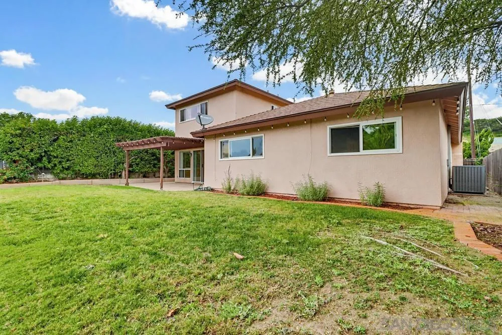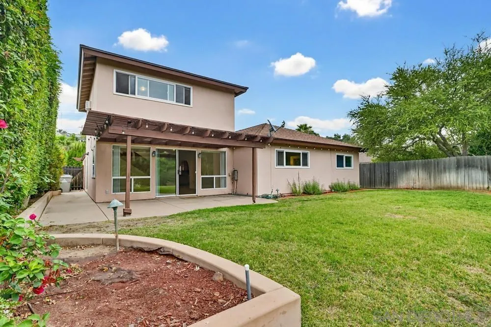 Welcome to this beautifully upgraded two-story home offering 4 bedrooms, 3 bathrooms, and a versatile bonus room, perfectly designed for comfortable living and entertaining. Enter through a private gated courtyard into a bright and inviting living room, where a gas-burning fireplace is highlighted by striking artwork set on a natural stone slab. The open-concept layout seamlessly connects the living spaces, including a dining area that flows into the kitchen, all enhanced by abundant natural light from large windows, a skylight, and mostly dual-pane vinyl windows and sliders. The kitchen is both functional and stylish, featuring custom cabinetry, granite countertops, a breakfast bar, a garden window overlooking the courtyard, and an above-range microwave and access to the large 2-car garage. This home offers two spacious primary suites, one upstairs and one downstairs—providing flexibility. The upstairs primary suite features built-in cabinets, serene canyon views, and a private bathroom with a glass-enclosed tub/shower, linen closet, and walk-in closet. Just off this suite is a bonus room with a large closet - ideal for a home office, gym, media room, or whatever suits your lifestyle. The downstairs primary suite features mirrored closet doors, a private bathroom with a shower and vanity area with built-in cabinetry. One of the standout features of the home is the expansive 22x18 family room, accessed through an oversized archway that flows from the kitchen/dining area. This space includes built-in cabinetry, under-stair storage, and large windows. See Supplement Plus a sliding door which provide beautiful canyon views from inside the home as well leading to the backyard—creating a perfect indoor-outdoor flow. Step outside to a tranquil backyard retreat overlooking a picturesque canyon—an ideal setting for relaxing, gardening or entertaining friends and family. The outdoor space features a lighted covered, paved patio, paved side yard with raised landscaping beds, a low-maintenance grassy area, a lower terraced garden area and bank that backs directly to the canyon. Being located on the level downhill end of Red River Drive provides the home unobstructed canyon views which make you forget that you are in a suburban neighborhood. In the canyon behind the property, you can access the city-managed Rancho Mission Canyon Trail system and in less than half a mile arrive at Rancho Mission Canyon Park (called Margerum Park by the neighborhood. The park features a recently updated playground, softball backstop and a huge grassy field where many local soccer and lacrosse teams hold practices. This home offers both convenience and natural beauty with easy access to neighborhood schools and parks, grocery stores, restaurants, and popular hiking trails such as Mission Trails Regional Park and Cowles Mountain. This home is centrally located with quick access to the 8 & 15 freeways. The San Diego Zoo & Balboa Park, downtown San Diego & Petco Park, and Ocean & Mission Beaches are all within 10-13 miles! This home has been family-owned and loved for over 50 years and is ready for your story!
