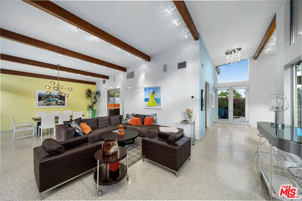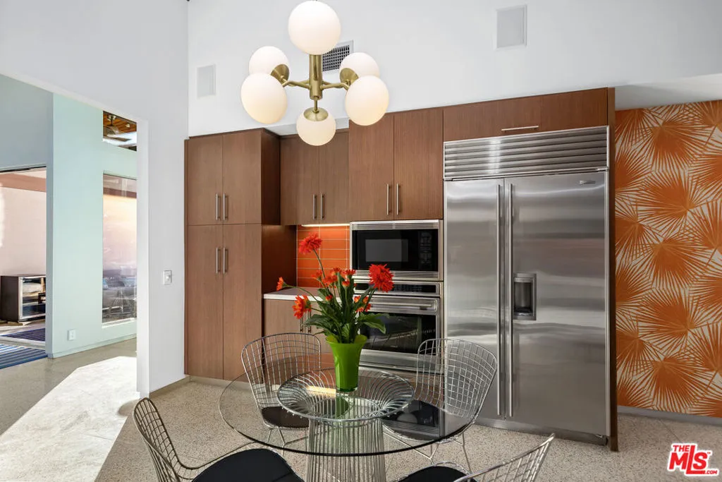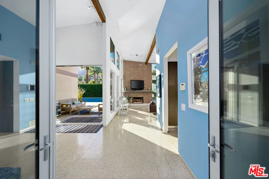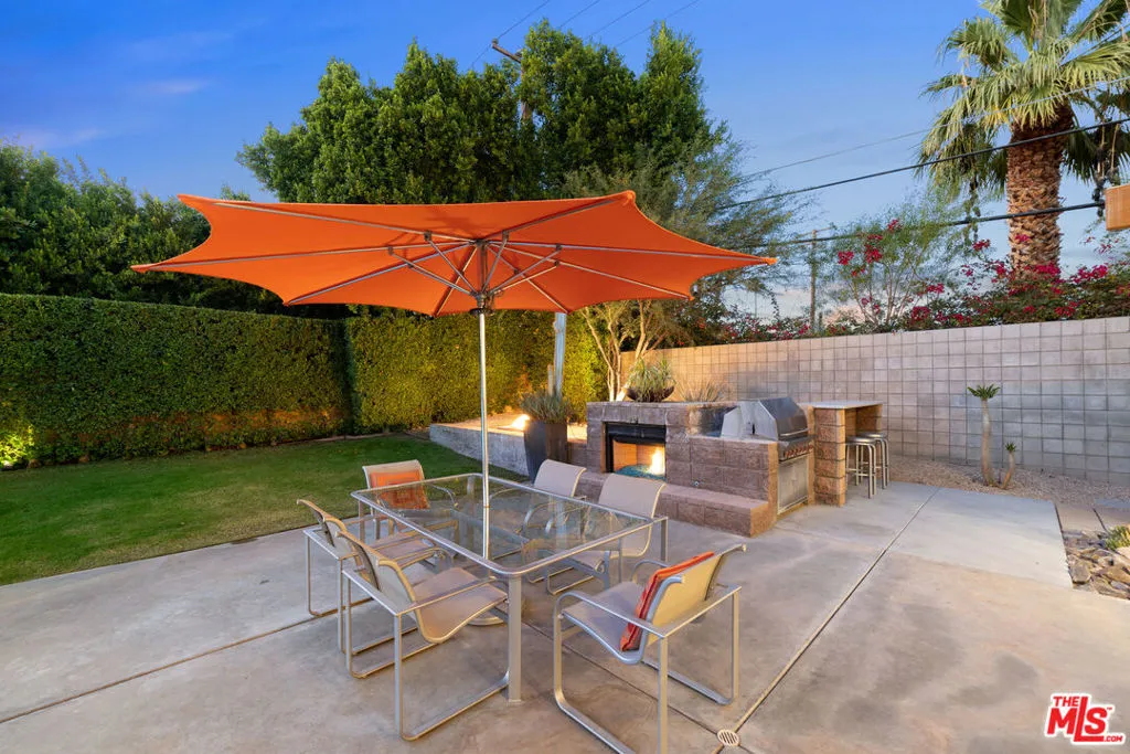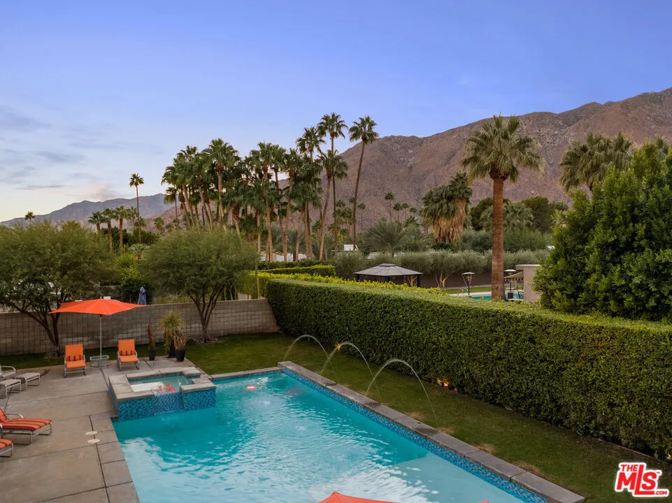 FURNISHED LONG-TERM LEASE. Find your desert oasis at this 4 bed, 4.5 bath modern architectural home at the end of a quiet cul-de-sac 2 blocks from all Palm Canyon Drive has to offer. The home is outfitted with furnishings, cookware and linens - simply bring your clothes and toothbrush! Step through a private courtyard with outdoor/ indoor water feature into a brilliantly designed open entertaining space ft. high ceilings with floor-to-ceiling windows and sliders, exposed beams, built-in speakers, and expansive west-facing unobstructed mountain views. Off the modern open kitchen is a guest bedroom, full bath, laundry and access to the 2-car garage. The main hall leads to a powder room, 2 en-suite bedrooms, and an enclosed master suite with dual showers and a walk-in closet. Sunbathe around the in-ground pool and spa w/ waterfall, spray pond features, & outdoor shower. Host around the fire pit or separate fireplace with easy access to the outdoor kitchen, BBQ, and bar. Call this place home with the turn of a key.