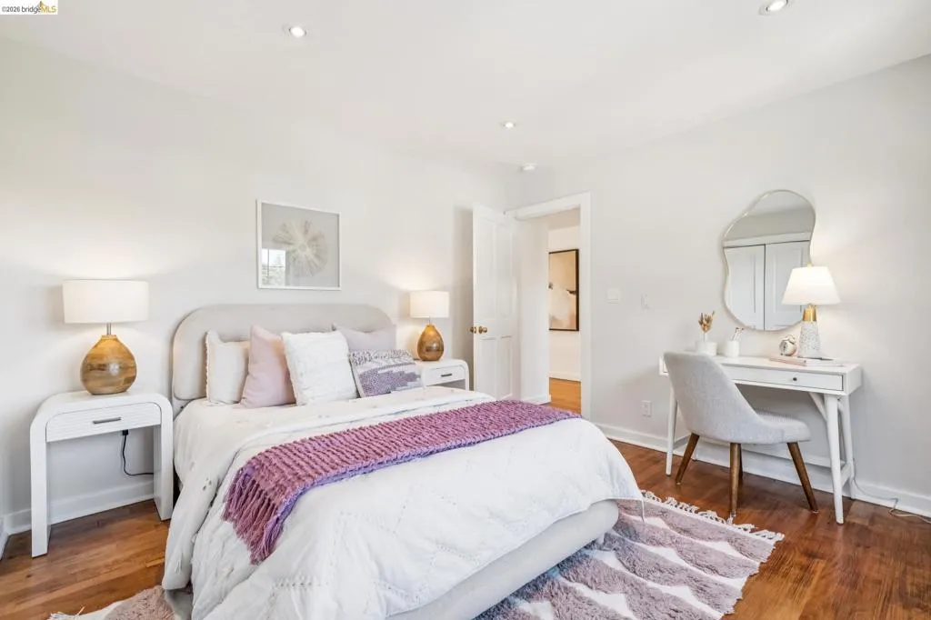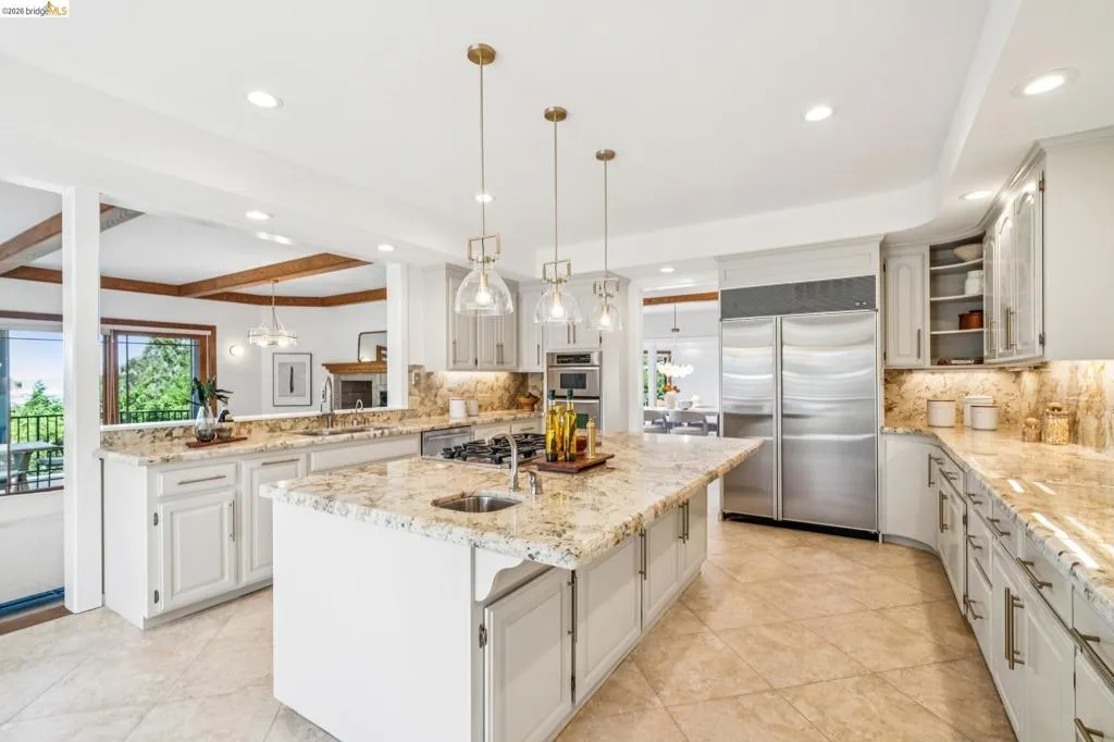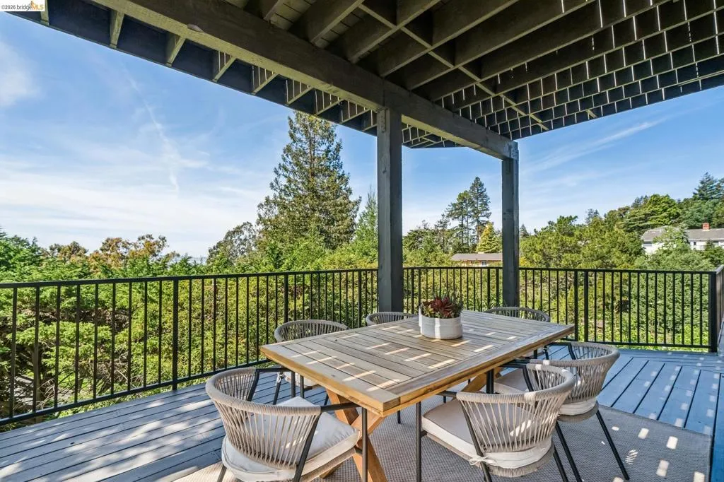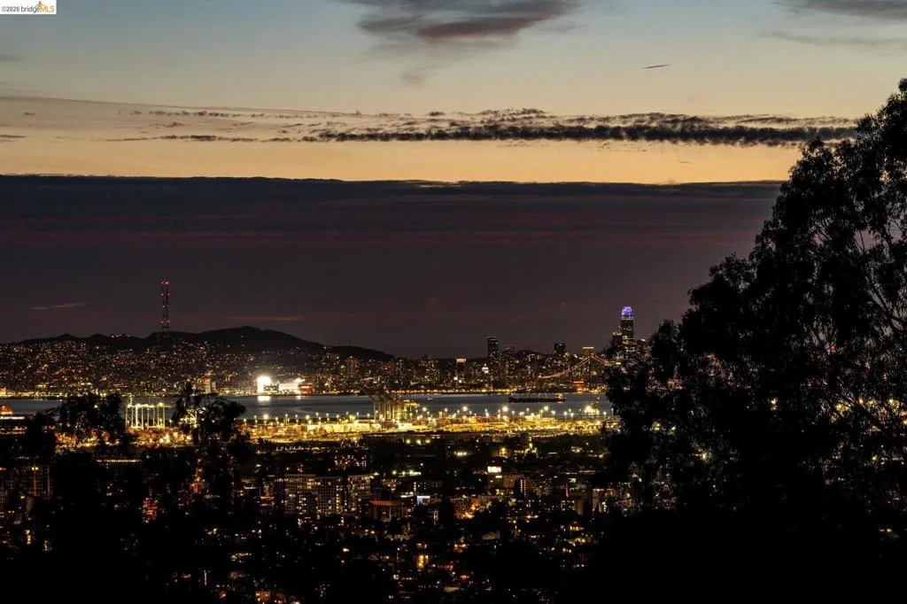 Rare estate style home on the Piedmont side of Montclair with stunning Bay views. Custom built with over 7,000 square feet of flexible living space, This expansive home offers 5+ bedrooms and 5.5 baths. A grand entry with vaulted ceilings and a sweeping staircase leads to a light-filled living room with a fireplace and formal dining room. The chef’s kitchen features a large island, ample cabinetry, a breakfast nook, and a pantry, opening to a casual den with fireplace. Expansive decks are ideal for entertaining and enjoying the views. The upper level includes four bedrooms and three baths, highlighted by a luxurious primary suite with a spa-like bath, soaking tub, double shower, walk-in closet, and private view deck. The lower level offers a guest suite with a kitchen and full bath, plus an additional office wing with a bedroom, half bath, living area and private entry. A large bonus room is ideal for a gym, theater, or recreation space. Set on park-like grounds with rose garden, mature landscaping, play areas. Amenities include a large laundry room, 3-car garage solar & tesla power, central air, high ceilings, and dual-pane windows. Private and serene, yet minutes from Montclair Village. Views: Downtown