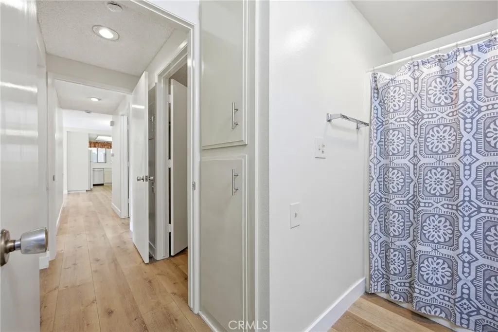 Charming 2-bedroom, 2-bath condo located in the highly sought-after Laguna Woods Village. This desirable single-level, street-level home offers easy access with no stairs and no one above, providing both convenience and privacy. The interior has been refreshed with new plank flooring and fresh paint throughout, creating a clean and inviting living space. Upon entry, you’re welcomed into a spacious living room filled with natural light, highlighted by a large sliding glass door that opens to your own private patio—perfect for relaxing or enjoying the outdoors. The kitchen is fully equipped with all appliances, including a refrigerator, new garbage disposal, and an in-unit washer and dryer for added convenience. Both bedrooms offer direct access to the patio, allowing you to enjoy peaceful mornings and evenings right from your room. The layout includes two well-sized bathrooms—one featuring a walk-in shower and the other a tub/shower combination. Ample closet space and additional storage can be found throughout the home. Ideally situated at the end of a quiet cul-de-sac, this home is part of the vibrant 55+ community of Laguna Woods Village, offering an incredible array of amenities including 5 swimming pools, 2 fitness centers, 7 clubhouses, golf courses, tennis courts, bocce ball, an equestrian center, and much more. Enjoy resort-style living in one of Orange County’s premier active adult communities.