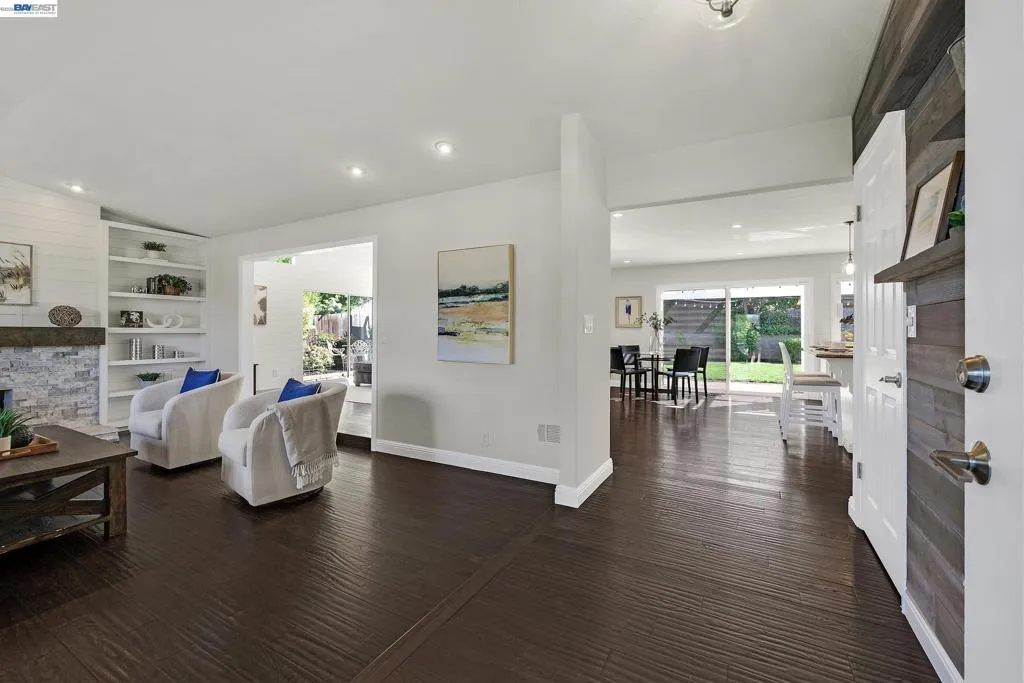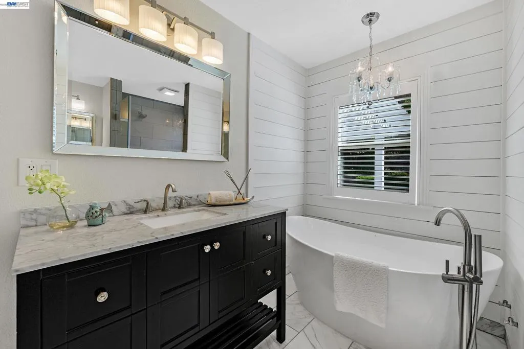 Sensational, light-filled Cape Cod single-story in the coveted Shadow Brook neighborhood of South Livermore. Warm, distressed hardwood floors sweep throughout the home, creating a seamless and inviting foundation, while marble and travertine elevate the two beautifully designed bathrooms. Floor-to-ceiling windows anchor the kitchen and family room, filling the space with natural light and creating an effortless indoor-outdoor connection. The kitchen is both functional and refined, featuring granite countertops and a central island that contrast elegantly against crisp white cabinetry. The primary suite is a peaceful retreat, complete with a walk-in closet, while the primary bath is a true highlight, featuring marble-top vanities, a frameless glass shower with marble mosaic tile floor, and a freestanding soaking tub set beneath a crystal chandelier—bringing a touch of understated luxury to everyday living. Barn doors accent the closets, adding warmth and character to the home’s clean, coastal feel. Outdoors, the backyard unfolds as a private garden setting with multiple areas to enjoy. A paver patio and white shade trellises create ideal spaces for dining and relaxation, while a sweeping lawn, vegetable garden, and tucked-away “secret garden” add both beauty and allure. Live Well!