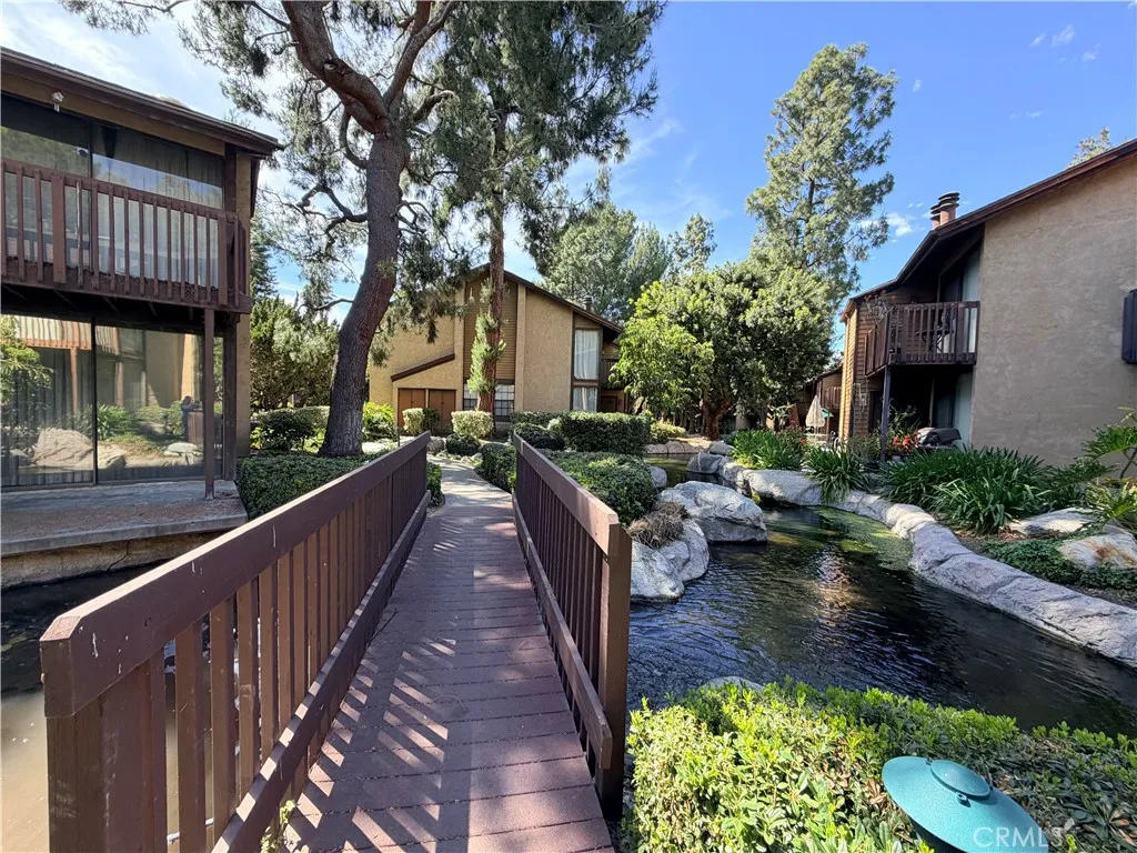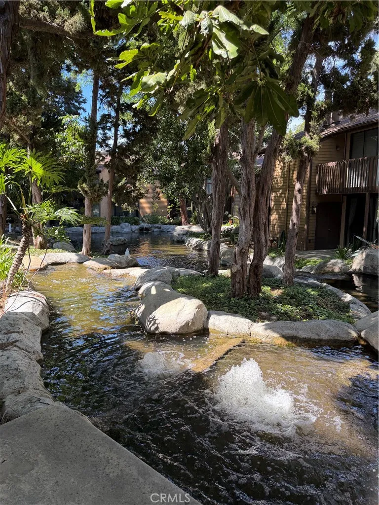 Welcome home to this charming two-level, 1-bedroom, 1-bathroom residence located in the desirable Lakeridge community. Offering approximately 987 square feet of living space, this home features an open and inviting floor plan. The lower level includes a bright kitchen that opens to a spacious living room with a cozy fireplace. Upstairs, you'll find a large primary suite featuring a walk-in closet and a full bathroom. It has an attached laundry area for added convenience. A brand new AC unit has also been installed, providing added comfort and energy efficiency year-round. Enjoy your private patio overlooking beautiful, serene streams and lush trees and the perfect setting for relaxation. The home also includes a one-car carport for added convenience. Entertain guests or unwind with family and friends in this peaceful, beautifully landscaped, and private community. Residents of Lakeridge enjoy resort-style amenities, including pools, spas, saunas, and tennis courts. This home is located in a census tract that qualifies for a $20,000 grant.