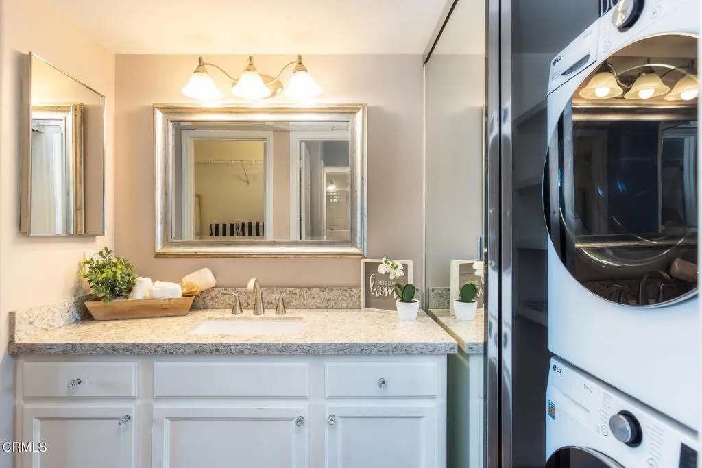It's all about coming home! This beautifully updated 1bed/1bath condo sits in the highly coveted La Costa Alta Community of Carlsbad and is just down the street from popular Bressi Ranch. It offers easy access to the beach, parks, hiking trails and incredible restaurants. This is a top floor end unit, with only two shared walls. And as a west-facing unit, you will enjoy spectacular sunset views and views of the ocean on clear days. Vaulted ceilings in the living room and bedroom provide a spacious and bright feeling and the large bedroom with walk-in closet has ample room for a large bed and an in-home office. The property features newly installed LVP flooring, newer LG washer/dryer and refrigerator and energy efficient Milgard windows. There's a newer heat pump that provides central air conditioning and heating. Additionally, this property provides two assigned carport spaces and a separate storage unit. The complex amenities include a pool, hot tub and private gym. This is the perfect first-time buyer, investor, or down-sizer's opportunity to live in one of Carlsbad's most sought-after neighborhoods. It truly is all about coming home!
