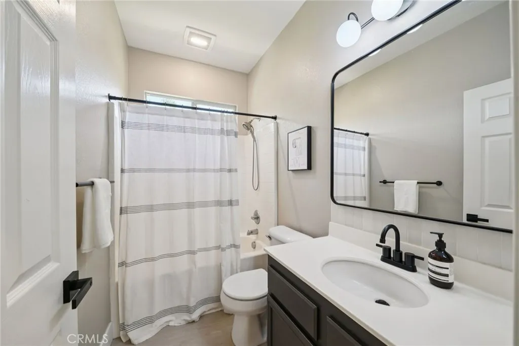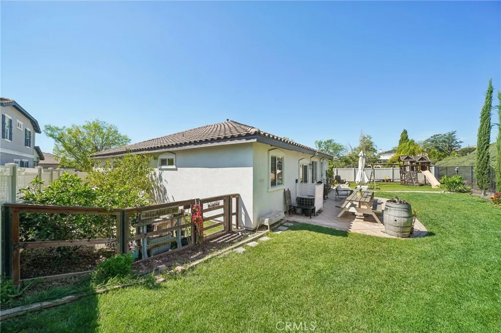 Welcome to this beautifully upgraded single-story home located in the highly sought-after Crowne Hill community. Situated on an expansive 14,810 sq. ft. cul-de-sac lot directly adjacent to a scenic greenbelt, trail, and community park, this property offers both privacy and a prime location. Inside, you’ll find a bright and open floor plan that lives larger than its square footage. The completely remodeled kitchen is a standout feature, showcasing new cabinetry with soft-close drawers and a Lazy Susan organizer, natural quartz countertops, and an expanded island that doubles as a dining table with seating for six—perfect for everyday living and entertaining. The home is enhanced with light-toned, wood-style luxury flooring, neutral interior paint, and tall modern baseboards for a clean, contemporary feel. Updated lighting and ceiling fans throughout add both style and comfort, along with a spacious walk-in closet in the primary suite. Go outside to a truly park-like backyard designed for entertaining and relaxation. Enjoy a unique, custom “cowboy pool,” a 10-foot pool with deck, a beautifully landscaped backyard filled with trees and flowering plants, fruit trees, lush yet low-maintenance landscaping, a dedicated playground area with turf, and a fenced family garden with planter boxes. The exterior has also been recently painted, adding to the home’s excellent curb appeal. Additional features include a spacious 3-car garage that is pre-wired for an EV charger offering easy installation. Located within the boundaries of top-rated schools, including Crowne Hill Elementary School and Temecula Valley High School, and just a short drive to Temecula Valley Wine Country, shopping, and dining, this home offers the perfect blend of lifestyle and convenience. With low HOA dues and access to Crowne Hill amenities including a park, playground, picnic areas, and basketball court, this home truly has it all.