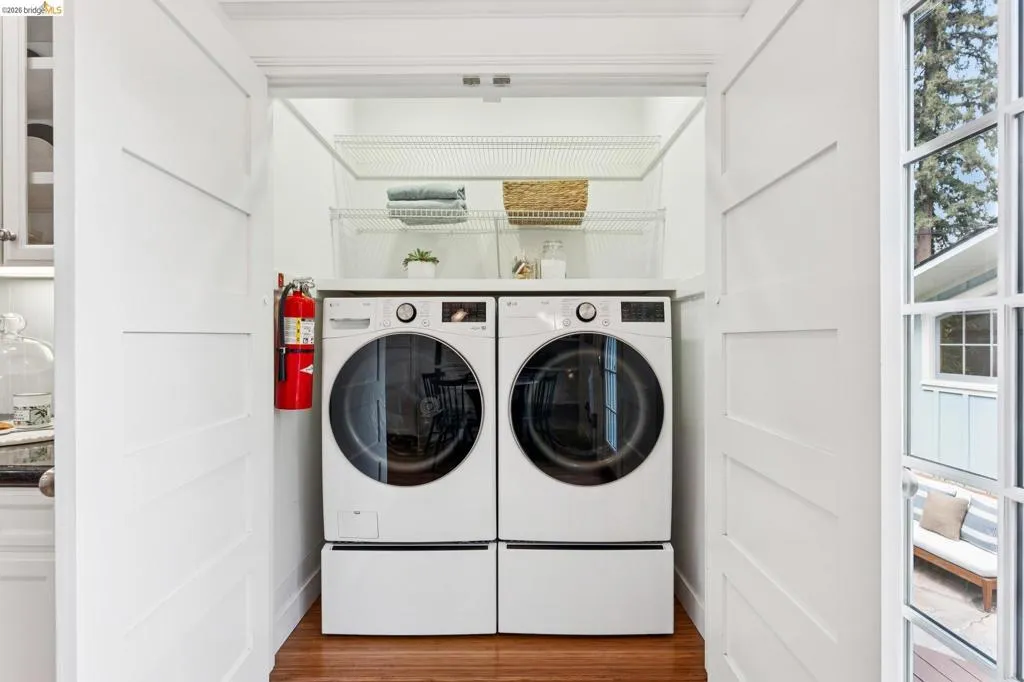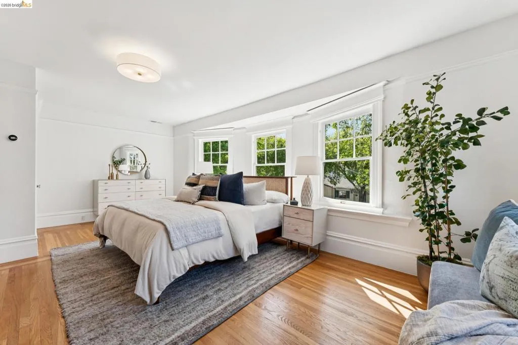 Welcome to 2035 Francisco St, a distinguished Neoclassical Structure of Merit in the heart of North Berkeley’s famed Gourmet District, where world-class dining, beloved cafés and daily conveniences are just steps away. This architecturally rich home offers 5 bedrooms, 2 baths, and a finished attic retreat with sweeping treetop, Bay and City views—an inspiring space for work or reflection. The chef’s kitchen features a 6-burner Wolf range, double oven, Thermador refrigerator and refined finishes, flowing into sunlit living and dining areas designed for comfort and connection. Refinished oak floors, coved ceilings, pocket doors, leaded glass windows and a classic dining fireplace showcase timeless character. French doors open to a generous deck and lush patio ideal for dining al fresco, entertaining or relaxing in a private garden retreat. A detached studio with full bath and soaring pine ceilings offers flexible guest or creative space. Custom exterior paint with pressed gold leaf accents highlights the home’s elegance. Upgrades include newer roof, tankless water heater and heat pump system. Long driveway fits 3–4 cars tandem. Moments to North Shattuck shops, The Cheese Board, Chez Panisse, UC Berkeley and BART. Walkscore – 98. Bikescore - 95. Home Energy Score of 5.