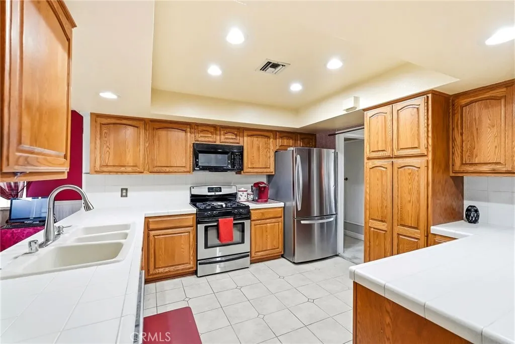 Range Priced. Seller will entertain and respond to all offers between $949,000 and $999,000. Welcome to this charming Chatsworth home, ideally situated on a desirable corner lot in a quaint and inviting neighborhood. Framed by a classic white picket fence, this property offers timeless curb appeal. Step inside to a spacious living room featuring soaring ceilings and a stunning double-sided fireplace, creating a warm and inviting atmosphere. The adjacent family room is equally impressive, featuring high ceilings, abundant natural light, a cozy fireplace, and direct access to the amazing large front porch, which is perfect for relaxing, entertaining or a possibly a potential 4th bedroom /JADU conversion with direct access from outside. The open and airy kitchen offers ample cabinetry and a cozy breakfast nook with views of the private rear yard, while a separate formal dining area provides the ideal setting for gatherings. The generously sized primary suite includes a private ensuite bath, complemented by two additional large bedrooms that share a centrally located full bathroom. Additional highlights include a dedicated laundry room with a sink and extra storage, plus a detached garage added flexibility or potential ADU and to be the perfect income generating opportunity. The backyard is truly unique, featuring a custom-built patio reminiscent of a movie set, surrounded by lush landscaping and mature fruit trees that create a serene and private outdoor retreat. Conveniently located near shopping, dining, and fitness centers, this home offers a fantastic opportunity to make it your own. With its spacious layout, high ceilings, highly desirable corner lot location, and undeniable charm!