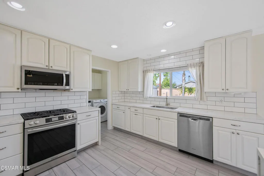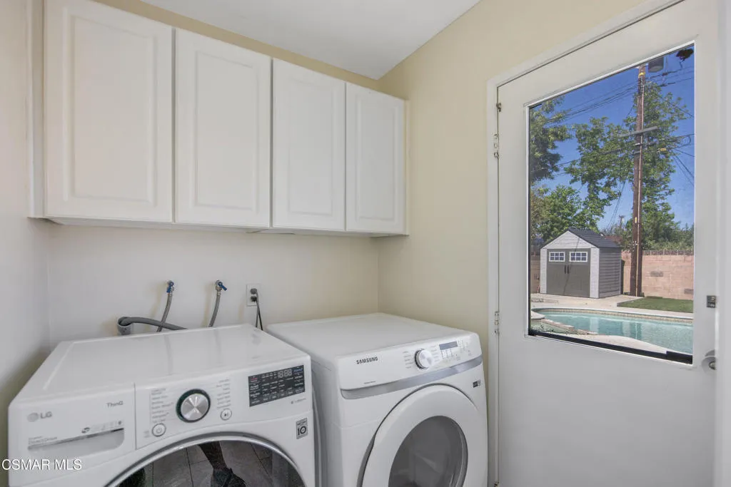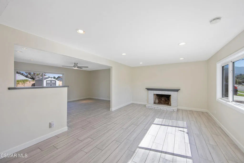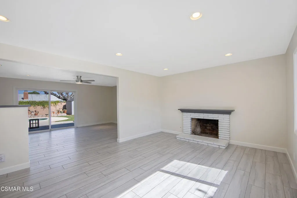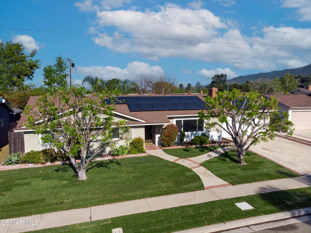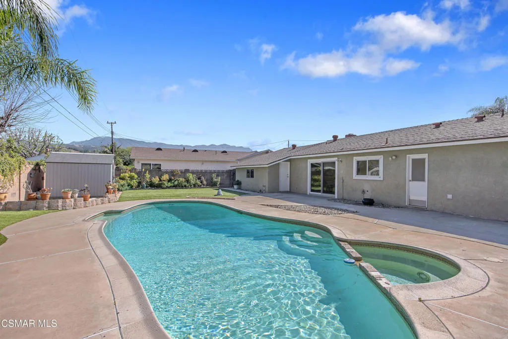 Tucked into a desirable Newbury Park neighborhood, this beautifully updated single-story home offers the perfect blend of comfort, style, and privacy. With 3 bedrooms, 2 bathrooms, and nearly 1,500 square feet of living space, this inviting residence sits on an expansive nearly 8,000 square foot lot--creating a peaceful retreat you'll love coming home to.Step inside to discover a bright and welcoming interior featuring smooth ceilings, recessed lighting, newer windows and doors, and gorgeous wood-look tile flooring throughout--combining the warmth of wood with the durability of tile. The spacious living room is anchored by a cozy fireplace, making it the perfect spot to relax or gather with family and friends.The heart of the home is the stunning remodeled kitchen, thoughtfully designed with modern finishes including sleek waterfall countertops, stainless steel appliances, and a classic subway tile backsplash. Just off the kitchen, an adjacent dining room offers a wonderful space for everyday meals or entertaining, with views overlooking the sparkling pool and backyard--bringing in natural light and a connection to the outdoor setting.Outside, the private backyard is truly a standout feature. Enjoy distant mountain views of Mt. Boney while taking in the serene surroundings. The generous yard offers a large grassy area with artificial turf, a sparkling pool and spa, and plenty of space for entertaining, play, or simply unwinding. Two storage sheds provide added convenience for all your outdoor needs.Additional highlights include an attached 2-car garage and solar panels for energy efficiency.Ideally located near Borchard Community Park, Newbury Park High School, and Sequoia Middle School, this home offers both tranquility and convenience. With its inviting atmosphere, thoughtful upgrades, and exceptional outdoor space, this is a home that truly checks all the boxes.
