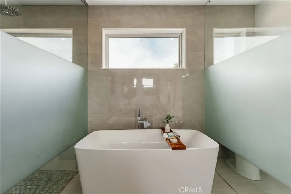 Hidden away, discover this newly built 2021 contemporary retreat defined by a calming aura, refined design, and elevated finishes. Serene, private, and thoughtfully composed, the home unfolds through a natural flow, paired with seamless living and abundant natural light. Designed as a true escape, privacy windows, lush landscaping, and the intentional positioning of living and sleeping spaces create a tranquil, immersive environment. Entering through landscaped gardens, you are welcomed into an enclosed sunroom designed for organic living (adding an additional 323 SF). Floor-to-ceiling windows, skylights, and ceiling-mounted heaters allow year-round use. Sliding LaCantina doors connect seamlessly to the living room, enhancing indoor-outdoor flow. Hardwood floors add warmth, while 12-foot ceilings, 7.5-foot custom doors, and an open-concept layout define the main level. Recessed lighting is integrated throughout, complemented by Pella double-pane windows and interior fire sprinklers. The kitchen is both functional and refined, centered around a tiered 10-foot quartz island with dual seating. Custom cabinetry by Coastal Cabinets with drawer-within-drawer inserts enhances usability, while premium appliances include a Miele 48” dual fuel range with steam oven and warming drawer, Bosch dishwasher, built-in Miele microwave, plumbed Miele coffee system, and Dacor panel refrigerator and freezer. Also on the main level, find a powder room and a flexible guest bedroom or office with ensuite bath featuring an oversized glass shower and heated floors. The two-car garage includes epoxy flooring, built-in and overhead storage, and a hybrid charging station, with additional parking on the rear drive enclosed by an electric gate. Upstairs, the home continues its emphasis on privacy and ease of living, connected by a floating staircase. The primary suite is positioned at the front of the home, with a hallway lined in custom cabinetry offering exceptional storage. The spa-inspired bath features a fully enclosed oversized shower, soaking tub, dual vanities, heated floors, and a custom walk-in closet. A secondary bedroom offers added privacy, a private balcony, and an ensuite bath with heated floors and a glass shower. A laundry area with built-in storage completes the level. Additional highlights include solar panels and a built-in security system with six exterior cameras. Private, peaceful, and thoughtfully designed, 664 Rosecrans presents refined coastal living.