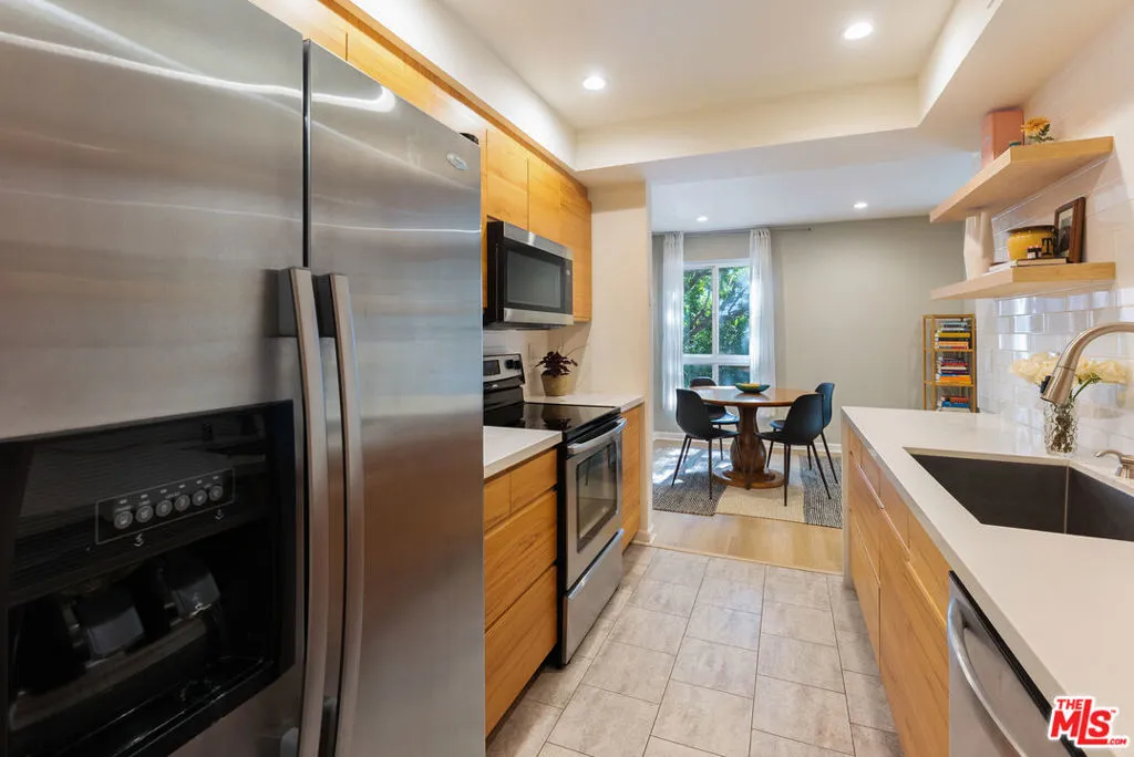 Ideally situated in a prime West LA location just moments from the best of Brentwood, this bright and modern residence at the Wilshire Barrington offers exceptional access to premier dining, shopping, and everyday conveniences. The home features a spacious two-bedroom, two-bathroom open layout filled with natural light. The newly remodeled kitchen showcases a clean Scandinavian aesthetic with quartz countertops, open shelving, and a stylish tile backsplash, flowing seamlessly into the dining area and inviting living room with a gas fireplace. Sliding doors lead to a private balcony - perfect for morning coffee or evening relaxation. The primary suite includes a walk-in closet and an ensuite bathroom with dual vanities and a shower. Additional upgrades include fresh interior paint, recessed lighting, a Nest thermostat, dual-pane windows, and updated flooring. The well-maintained building offers a secured parking garage with two tandem spaces, a pool, gym, and landscaped common areas. Two private storage cabinets are also included. Enjoy close proximity to UCLA and the vibrant lifestyle of nearby Santa Monica, all while being tucked into a central and highly desirable neighborhood. With its unbeatable location near the best of West LA, this move-in-ready condo presents an exceptional opportunity to experience comfort, convenience, and style in one of the city's most sought-after neighborhoods.