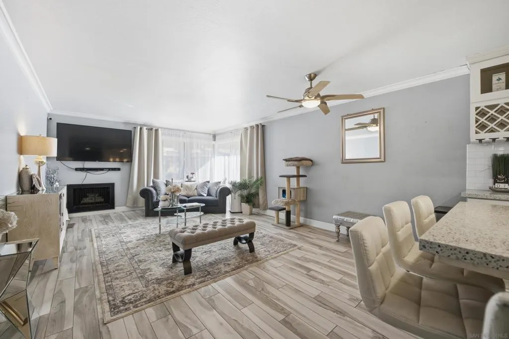 Rare CORNER unit, in a “No freeway noise location” of the complex! Best and quietest location. Welcome to the VERY sought-after Mission Ridge community of Mission Valley! (Visit Virtual Tour). This beautifully upgraded 1 bed, 1.5 bath condo is filled with natural light and enhanced privacy. The open living space features laminate wood flooring, quartz kitchen countertops, stainless steel appliances, and elegant rhinestone cabinet handles. The balcony has been fully enclosed in order to expand the Master bedroom, creating one of the largest bedrooms in the entire complex. Enjoy in-unit laundry, central air and heat, and resort-style amenities including an Olympic-size pool, spa, tennis courts, gym, racquetball, dog park, and clubhouse—all minutes from shopping, dining, parks, and freeways. Corner unit comes with 1 assigned parking space in carport with storage and 1 additional parking pass for guests. HOA includes trash and water! The complex has undergone resurfaced streets and new exterior painting, with the added convenience of Amazon secure delivery cubbies in the lobby of each building. The meticulously maintained grounds feature trimmed trees, ample guest parking, and no special assessments. Close proximity to shopping, nearby restaurants, 24 Hr fitness, Snapdragon Stadium, upcoming SDSU West, Mission Valley and the trolley make this location unbeatable. On-site amenities include a gym, rec room, and gas (for fireplace only), and water & trash paid by HOA. Don't miss out on this incredible opportunity for comfortable and convenient living.