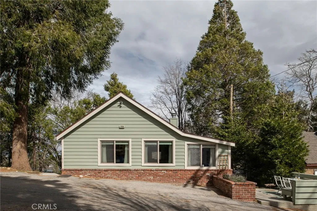 Perched above the trees and just moments from the towns of Lake Arrowhead and Cedar Glen, this level entry vintage gem with treetop and lake views is the perfect cozy retreat. Perfect for full-time living or part-time use, this home is also a successful short-term rental with an active Airbnb license—making it a turnkey investment opportunity. Elements of thoughtfully curated and elevated design details create a unique experience. Upon entry, an oversized mudroom with terracotta floors and wall-to-wall windows provides ease of use for every season and an abundance of storage. Through the charming kitchen with oak floors and an island is the open concept and spacious living area with a cozy wood burning stone fireplace, tongue and groove pine throughout and a charming window seat among custom built-ins. Enjoy meals in the dining space with a breathtaking wall of windows and views. The first guest bedroom is tucked away with wraparound windows creating a luxurious space with extra privacy. An additional bedroom and the sweet vintage bathroom complete the first level. A gorgeous hand-built solid wood spiral staircase is a work of art in this home. This alluring piece of craftsmanship leads you to the large primary bedroom with a bay window seat open to a private patio. The outdoor space is abundant with two separate seating areas and situated on a rare double lot, the expansive open space next to the home offers endless possibilities for expansion or customization. This turnkey offering provides peaceful mountain living near numerous hiking trails, the famous malt shop, Cedar Glen Inn, Mag. Pi, Cedar Glen Fine Foods grocery and much more!