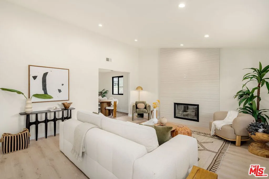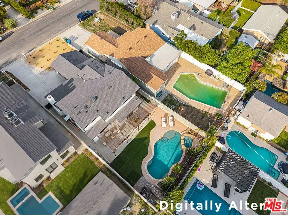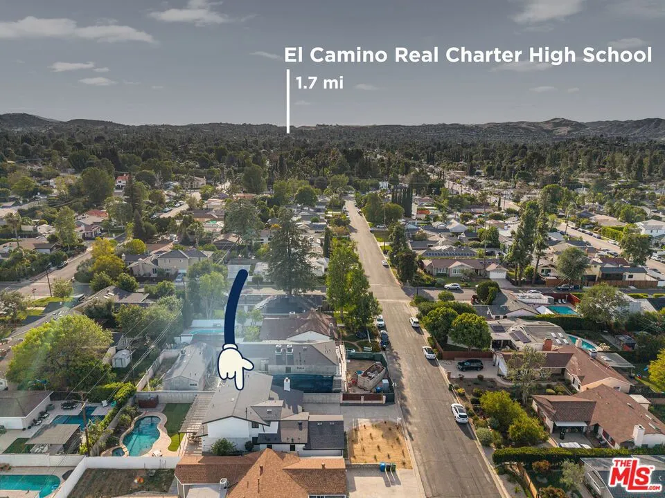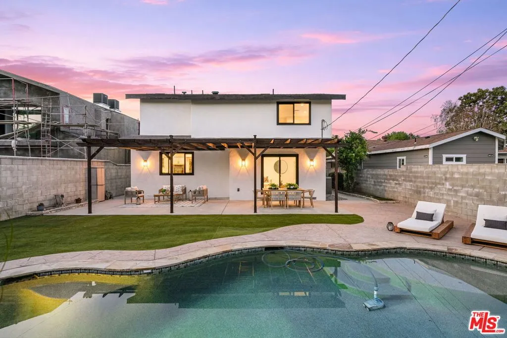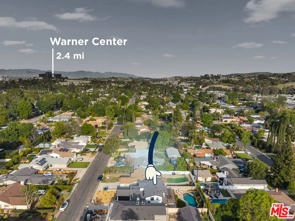 Stunning, fully reimagined designer residence in prime Woodland Hills. This 4-bedroom, 5-bathroom home spans nearly 2,500 square feet and has been completely renovated from top to bottom with permits, blending modern luxury with thoughtful functionality. Set behind brand-new landscaping and a striking entryway, the home welcomes you into a light-filled living room with soaring vaulted ceilings and a dramatic floor-to-ceiling stone fireplace that immediately sets the tone for the home. Every detail has been carefully curated, with high-end finishes and a seamless flow throughout. The spacious layout includes a formal dining room, inviting family room, separate living room and a beautifully designed chef's kitchen featuring Calacatta quartz countertops, custom cabinetry, and abundant storage. Sliding glass doors open to a private backyard retreat with a pergola, PebbleTec pool and spa, and lush, low-maintenance landscaping that is perfect for entertaining or embracing the indoor-outdoor California lifestyle. All four bedrooms are generously sized and offer ensuite bathrooms for ultimate comfort and privacy. Two ensuite bedrooms are conveniently located on the main level, ideal for guests or multi-generational living. Upstairs, the luxurious primary suite impresses with a grand double-door entry, an expansive walk-in closet, and a spa-inspired bathroom with double vanities and separate soaking tub, along with an additional ensuite bedroom and laundry area. No expense has been spared, with upgrades including porcelain tile, wide-plank laminate flooring, Calacatta quartz surfaces, new hardware, recessed lighting, new doors, and fresh interior and exterior paint. Major system improvements include a new HVAC system, black cool roof, new sewer line, new double-pane windows, and updated plumbing and electrical, along with a newly finished two car garage. The newly landscaped front yard showcases a clean, modern desert-inspired design, completing this turnkey Woodland Hills home that truly has it all.