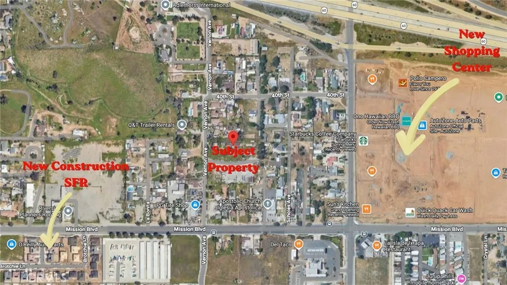 Prime Development Opportunity – 3 Flat Usable Acres, A-1 Zoned, Utilities on Site , Pyrite Road Corridor, Jurupa Valley, CA This exceptional 3-acre site offers a rare combination of flat, usable topography and strategic location in one of Jurupa Valley’s most active growth corridors. Situated directly off Pyrite Road, the property benefits from excellent visibility and accessibility, with proximity to the SR-60 freeway interchange and the vibrant Mission Boulevard/Pyrite retail node. The site is fully developable with no significant topographic constraints, making it ideal for a range of residential, light agricultural, or transitional uses. Jurupa Valley is experiencing robust real estate development momentum, transitioning from traditional single-family residential (SFR) neighborhoods to larger-scale commercial and mixed-use projects. Notable activity in the immediate area includes the **Shops at Jurupa Valley** (a major retail center with over 230,000 sq ft of commercial space at the Mission Blvd & Pyrite intersection), ongoing infrastructure improvements to Pyrite Street and the SR-60 interchange, and multiple entitled or under-construction SFR subdivisions and multi-family communities throughout the city. This dynamic environment positions the property for potential future rezoning, General Plan Amendment, or entitlement processes to accommodate higher-intensity residential, commercial, or mixed-use development consistent with the city’s growth trajectory. Currently zoned **A-1 (Light Agriculture)** under the Jurupa Valley Municipal Code, the parcel supports a single-family residence by right, along with light agricultural activities such as crop cultivation, nurseries, greenhouses, and limited personal animal keeping. Additional entitlements, including a second dwelling unit tied to active farming operations or on-site sales of agricultural products, are available via Site Development Permit. State law also permits Accessory Dwelling Units (ADUs) and Junior ADUs, providing flexible housing options. Key attributes include: - Three flat, usable acres— approximately 130,680 sq ft of prime, buildable land and utilities on site. - Excellent access and visibility— frontage or immediate proximity to Pyrite Road and 60 freeway in a high-growth corridor. - Strong development pipeline context — surrounded by advancing SFR communities, retail centers, and infrastructure upgrades. Buyers and Buyers Brokers Encouraged to Complete Their Own Due Diligence.