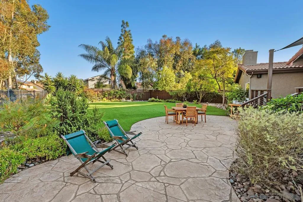 Situated on a nearly ¼-acre flat cul-de-sac lot backing to a private canyon with serene, park-like views, this home offers a beautifully landscaped, resort-style backyard with artificial turf, mature fruit trees, and an expansive Trex deck (2020) ideal for outdoor living and entertaining. Inside, the open floor plan features formal living and dining rooms with oak hardwood flooring, a separate library/den with gas fireplace, and an expanded great room with wood-burning fireplace, built-in entertainment center, surround sound, and window seating. The chef’s kitchen includes top-of-the-line appliances, Taj Mahal quartz countertops, custom cabinetry with roll-out drawers, new wood flooring (2024), a breakfast nook, and French doors to the backyard. A downstairs bedroom (currently an office) with custom built-ins is adjacent to a spa-inspired bath. Upstairs offers fresh carpet and paint, a spacious primary suite with dual closets and additional storage, an upgraded bath, and two secondary bedrooms. Additional highlights include owned solar, major system updates, and a 2-car garage with built-ins. Conveniently located near Sorrento Valley, UCSD, beaches, freeways, shopping, and dining.