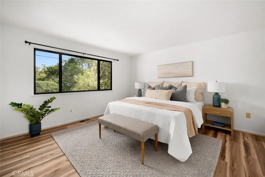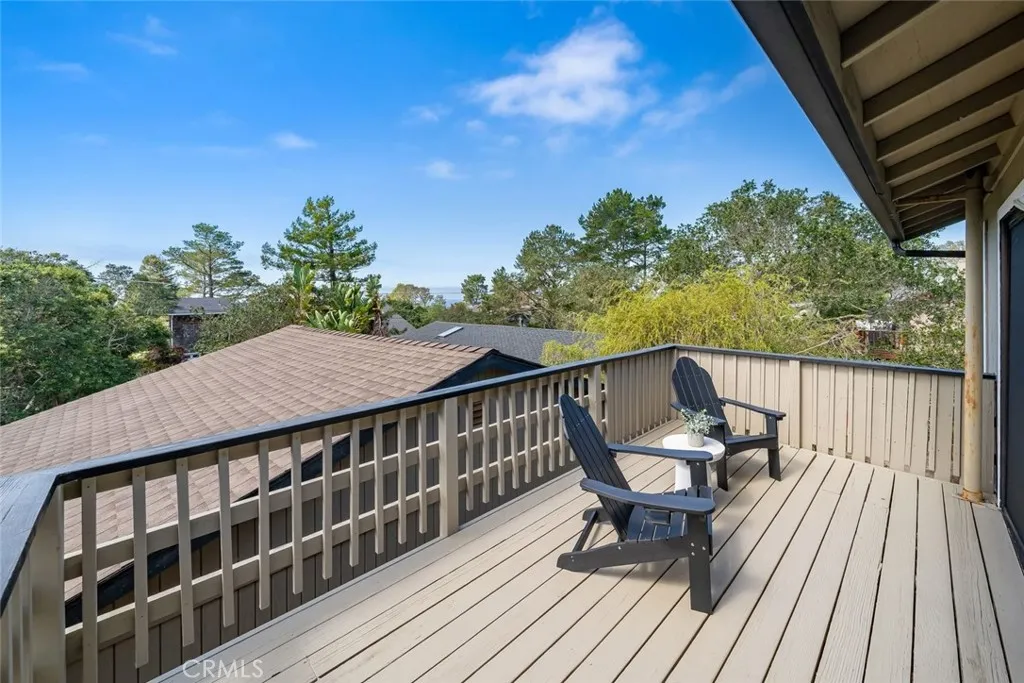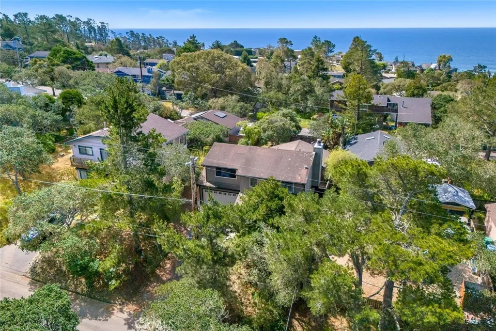Located in the desirable Berwick Heights neighborhood of Lodge Hill, this captivating 3-bedroom, 2-bathroom home offers the perfect blend of coastal charm and forest serenity with treetop and peek-a-boo ocean views. On the upper level, the main living space welcomes you with an airy open floor plan, vaulted beamed ceilings, and a cozy wood-burning stove. Built-ins add character and functionality, while a sliding glass door leads to an expansive deck, ideal for entertaining guests or unwinding as you take in the ocean vistas. The sunlit dining area features a picturesque view window and a built-in hutch, creating a warm and inviting space. The kitchen is both practical and charming, offering generous counter space, abundant storage, a garden window, and a full suite of appliances including a refrigerator, gas stove, microwave hood, and dishwasher. Also on this level, the private primary suite serves as a peaceful retreat, complete with a walk-in closet and an ensuite bathroom featuring a walk-in shower. Downstairs, you’ll find two spacious bedrooms and a full bathroom, along with a convenient hallway laundry area. This level also provides direct access to the attached two-car garage, offering additional storage and easy backyard entry. Fresh interior paint and stylish luxury vinyl plank flooring give the home a crisp, contemporary feel. Set on a unique street-to-street lot, the property includes a detached two-car garage with its own entrance off Berwick Drive, perfect for extra vehicles, a workshop, or creative space. The backyard is fully enclosed with a custom perimeter fence and gated driveway, offering privacy and versatility with room for gardening, pets, play, or even potential RV parking. As an added bonus, the property includes a Minor Use Permit/Coastal Development Permit, opening the door to even more possibilities. The Minor Use Permit allows the owner to turn the detached garage into a 600 square foot guesthouse with a second-floor balcony. This is your opportunity to enjoy coastal living with space, privacy, and unforgettable views, all in one exceptional Cambria home.