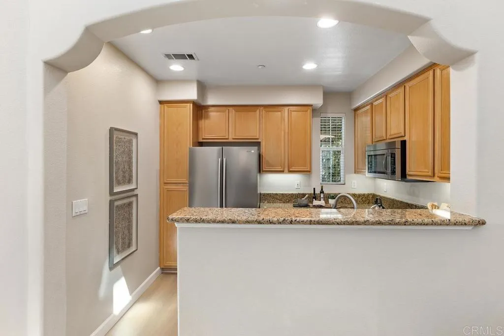 Discover this beautifully tri-level townhouse located in the highly sought-after gated community of Springfield in San Elijo Hills! This spacious 2-bedroom, 2-bathroom home offers 1,338 SF of open-concept living, complete with soaring vaulted ceilings and large windows that flood the space with natural light. Step inside to find brand new luxury vinyl plank flooring throughout the home. A versatile loft on the 2nd floor provides the ideal space for a home office, den, or a nursery. Living room with a cozy fireplace that opens to a charming private balcony. The top-floor primary suite includes a walk-in closet and a dual-sink vanity. Residents enjoy the convenient walkability to the highly ranked Elijo Elementary and Middle School! Just minutes from scenic hiking trails, San Elijo Hills Town Center, shops, restaurants, parks, and more! Don't miss your chance to own in one of San Marcos's most desirable neighborhoods. Schedule your tour today!