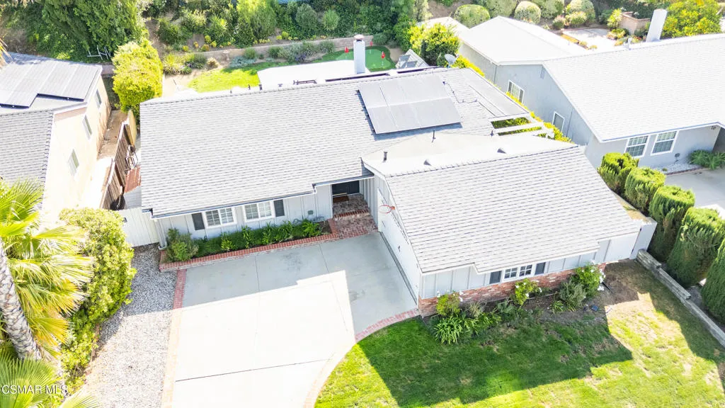 Beautiful single-story home with a stunning yard and an inviting open-concept layout filled with natural light. The updated kitchen features a large center island that overlooks the dining area and family room, creating a seamless flow ideal for everyday living and entertaining. Wood flooring adds warmth and continuity throughout the main living spaces.The remodeled primary bathroom offers charm and comfort, while the spacious family room showcases high ceilings, a cozy fireplace, and direct access to the backyard. Step outside to a generous grassy yard with mature trees and a covered patio--perfect for relaxing or hosting guests.Additional upgrades include solar panels through Sun Run, an updated HVAC system installed approximately two years ago, and a roof replaced within the last five years--providing both efficiency and peace of mind. Located within the highly sought-after Oak Park Unified School District, this home combines comfort, style, and functionality in an exceptional setting.