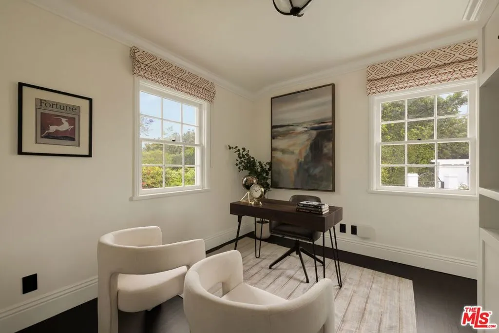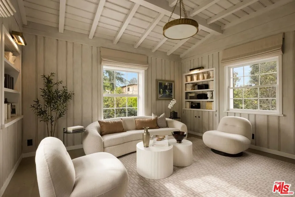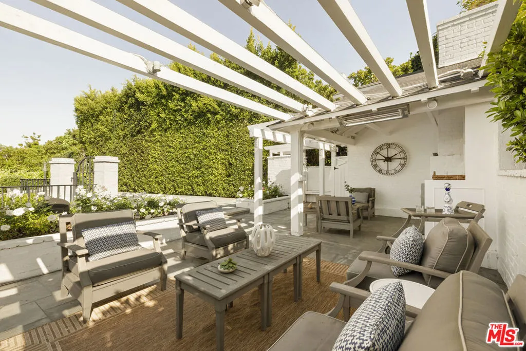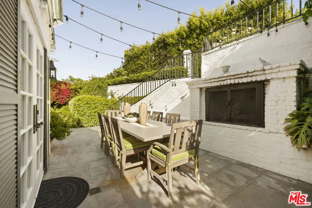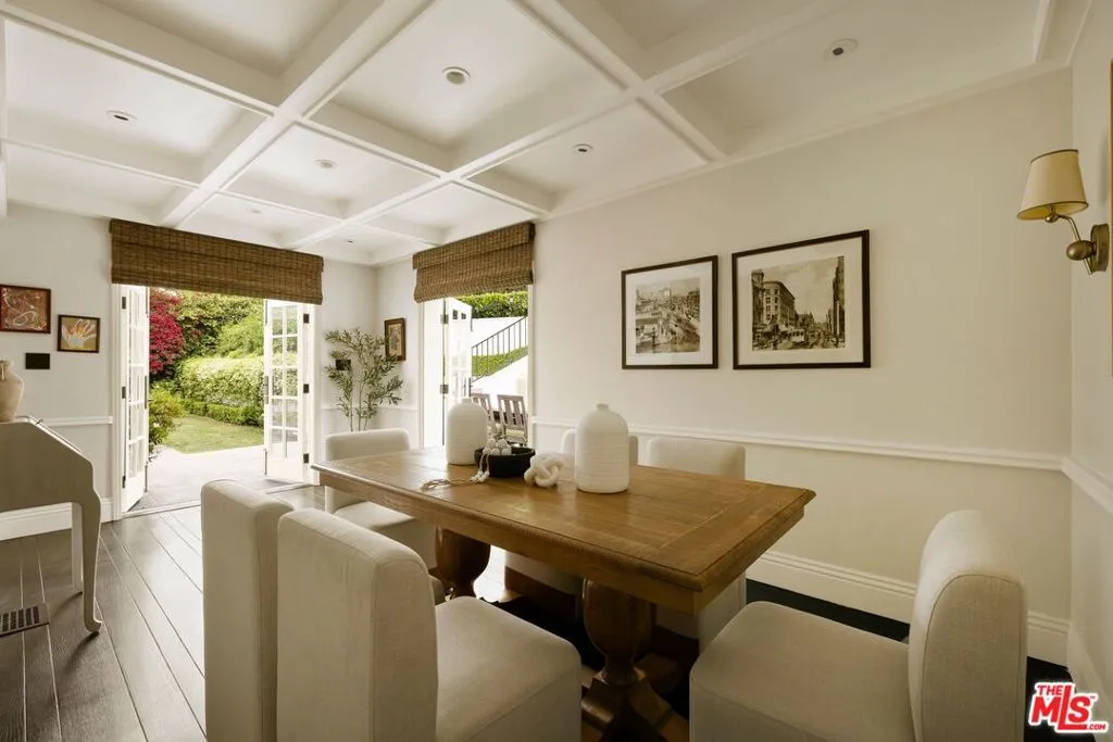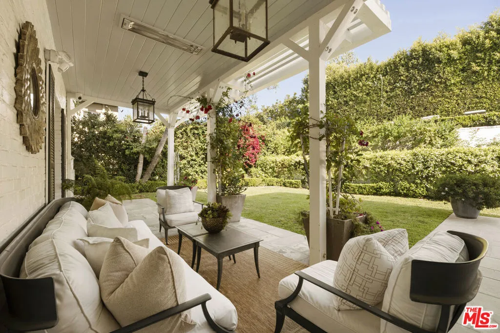 Timeless Monterey Colonial in the prestigious enclave of Little Holmby, thoughtfully restored to honor its 1930s architectural heritage while embracing modern California living. Elegant craftsmanship and classic period details are showcased throughout, including inlaid hardwood floors, beamed ceilings, intricate moldings, and French doors that open to garden views and natural light. A gracious formal entry leads to beautifully scaled living spaces, including a living room with fireplace opening to covered patios and the lush backyard beyond, a sunlit formal dining room, and a cozy paneled den ideal for relaxation. The gourmet chef's kitchen with top-tier appliances flows seamlessly into the breakfast area, creating an ideal setting for everyday living and entertaining while maintaining a natural connection to the outdoor spaces. Five en suite bedrooms include a luxurious primary suite with spa-like bath and expansive walk-in closet. Designed for the quintessential Southern California lifestyle, the private grounds feature a swimmer's pool, pavilion with bathroom and shower, multiple seating and dining areas, and a flat grassy yard framed by mature landscaping. Additional amenities include integrated sound, security system, and gated parking. Ideally located moments from UCLA, Beverly Hills, and within the highly regarded Warner Avenue Elementary School district.