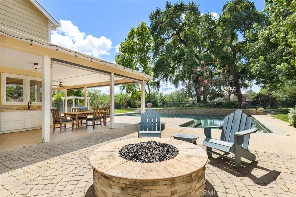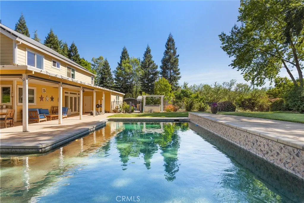 Rare Opportunity in Highly Sought-After Peterson Ranch Estates. Sitting on .98 acres, this exceptional 4-bedroom, 3.5-bath home is located in one of the area’s most desirable neighborhoods, offering a rare combination of quality upgrades, functional design, and resort-style outdoor living—all within walking distance to Durham schools. Designed for both everyday living and entertaining, the home features beautiful maple flooring throughout the main living areas, fresh interior paint, and new carpet in the spacious primary suite. The well-designed floor plan includes a Jack-and-Jill bathroom, downstairs half bath, and generous living spaces highlighted by fireplaces in both the family room and primary bedroom. The remodeled kitchen and dining area showcase quartzite countertops, custom tile work, and high-end appliances including a Thermador 48” 6-burner range with convection and steam ovens, Sub-Zero 48” refrigerator/freezer, Wolf microwave, and Bosch dishwasher. The primary suite offers a private retreat with a walk-in tiled shower featuring dual shower heads and a separate soaking tub. Step outside to a true backyard oasis with a custom 40’ x 20’ pool, 12’ x 12’ kiddie area, bench seating, pebble tech finish, custom tile, and cool deck, along with an outdoor kitchen, tiled patio, and gas-plumbed travertine fire pit. Mature landscaping, citrus trees, garden boxes, and 100+ year-old Valley Oaks provide both beauty and shade. Additional features include OWNED 8.12 kW solar, whole house fan, two HVAC systems, pond, abundant off-street parking, and a two-car garage currently set up as a game room with a full glass 8’ door. Built in 2001 and meticulously maintained, this property is a rare opportunity in Peterson Ranch Estates.