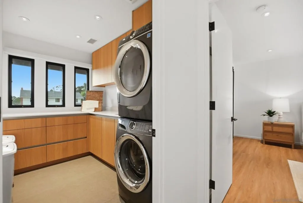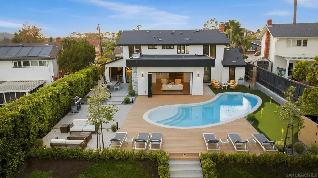 This exceptional residence in the heart of University City has been completely reimagined with a modern & elevated design throughout, including a thoughtfully designed ADU with kitchenette & private entrance, ideal for guests, extended family, rental income, or a dedicated home office. The home features new mechanical, electrical, plumbing, roof, drainage, & irrigation, offering the ease of a fully electric property with modern efficiency. Interior spaces blend sophistication & functionality with Savant whole-home automation, integrated Sonos audio, automated shades, recessed LED lighting, & commercial-grade WiFi extending throughout the home & backyard. At its center, a chef’s kitchen showcases Miele appliances, custom soft-close cabinetry, a generous island, & walk-in pantry, flowing effortlessly into expansive living areas enhanced by La Cantina doors & a striking 15-foot accordion opening, creating a true indoor-outdoor lifestyle. The primary suite is a private retreat with tranquil backyard views, complemented by a spa-inspired bathroom featuring heated floors, an oversized soaking tub, dual showerheads, & refined finishes. Outdoors, the home transforms into a resort-style setting with a fully upgraded pool, Baja shelf, new equipment, Apex wood-like decking, putting green, multiple lounge & dining areas, & sweeping canyon views. Additional highlights include advanced security features, beautifully landscaped grounds with privacy hedging & fruit trees, & a premier cul-de-sac location in one of University City’s most desirable pockets.