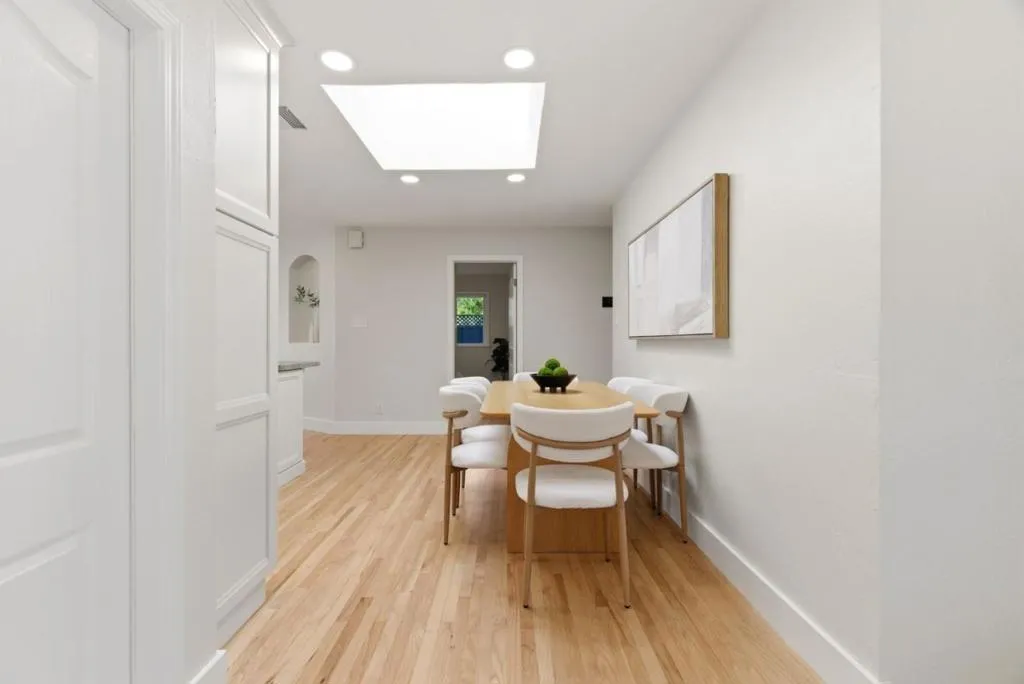 Nestled at the base of the Santa Teresa foothills and with views of lush greenery, this updated home offers modern amenities amongst an idyllic setting and stunning backyard. The kitchen features leathered granite countertops, white shaker cabinetry, with eat at island and dining area. There is a formal living room with a picture window, as well as a step down the family room with a fireplace. The primary suite has a modern updated bath. One bedroom has a built-in Murphy bed with shelving surround. Newly refinished hardwood floors. Other amenities include new HVAC and ducting, dual pane windows, electric car charger, Lutron Caseta switches, leased solar. The backyard was remodeled in 2023 ($350k) and is perfect for relaxing and entertaining with an in-ground pool, paver stone surround, IPE deck lounge area, fire pit with built-in bench. Gorgeous IPE covered outdoor kitchen with quartzite waterfall counters, gas BBQ, ice maker, refrigerator, ready space for Green Egg. Drought-tolerant landscaping, decorative metal art, spacious side yard with turf. Finished garage with epoxy flooring, mini split, and built-in custom cabinetry. Walk to Sakamoto Elem and Santa Teresa High School. Minutes to Santa Teresa Square shops, restaurants, Santa Teresa Co Park trails, Westfield Oakridge.
