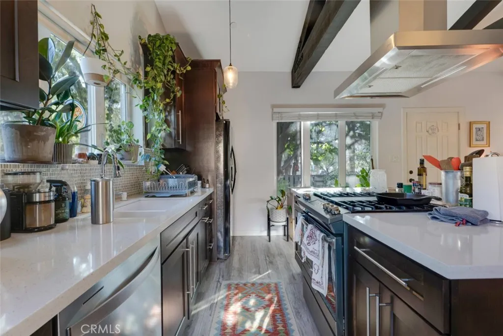 Exceptional opportunity in sought-after Atwater Village featuring 2 separate single-family homes on generous corner lot with SB 9 lot split potential already in motion. Enjoy flexibility to utilize as an owner-occupied residence with a separate income-producing unit. The main home—delivered vacant—offers 3 beds + bonus room, 3 baths, & nearly 2,200 sq ft of thoughtfully updated living space with owned solar! Blending modern upgrades with preserved character, including antique-inspired lighting, abundant natural light, & a charming Juliet balcony off the dining area. Remodeled kitchen with white shaker cabinetry, Vetrazzo counters, passthrough to the open great room, & sleek induction range, energy efficient & cleaner indoor air quality, & a cleverly concealed stackable laundry closet. A spiral staircase connects multiple levels, leading to a cozy loft above & a versatile lower level featuring a spacious primary bedroom with dual closets, French doors to a private courtyard, a versatile bonus room that could be used as a 4th bedroom, additional living space, & a full bath, ideal for guests, extended family, or income potential with direct exterior access. The second home, built in 2017 with its own address & currently tenant-occupied, offers 2 beds, 1 bath, & 900+ sq ft with vaulted beamed ceilings expanding the open-concept living room, dining area, & kitchen with center island, & French door that opens to a spacious brick patio with fountain, plus gated parking. The grounds create a peaceful retreat, featuring beautifully curated drought-tolerant landscaping, lush mature greenery, colorful flowering plants, fruit trees (avocado, fig, orange, & lime), & thoughtfully designed hardscapes with meandering paths that create a tranquil, garden-like setting. The property has already received preliminary approval from the City of Los Angeles for an SB 9 Urban Lot Split, providing a head start toward creating 2 legal parcels while preserving the option to maintain the current configuration. Located within the attendance boundaries of highly rated schools including Franklin Elementary, Washington Irving Middle, & John Marshall High, & just moments from the vibrant shops & dining along Glendale Blvd, Griffith Park, & the Los Angeles River Bike Path, with convenient access to the 5 & 2 freeways, this is a rare offering that combines lifestyle, flexibility, & long-term upside in one of Northeast LA’s most desirable neighborhoods.