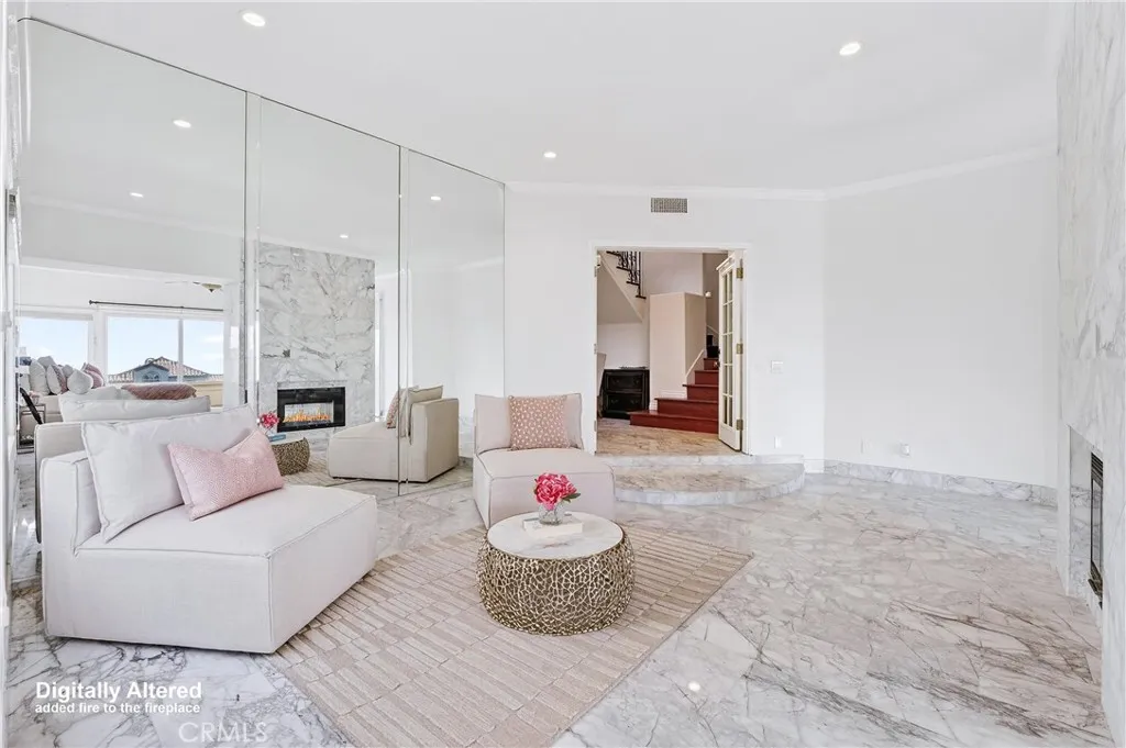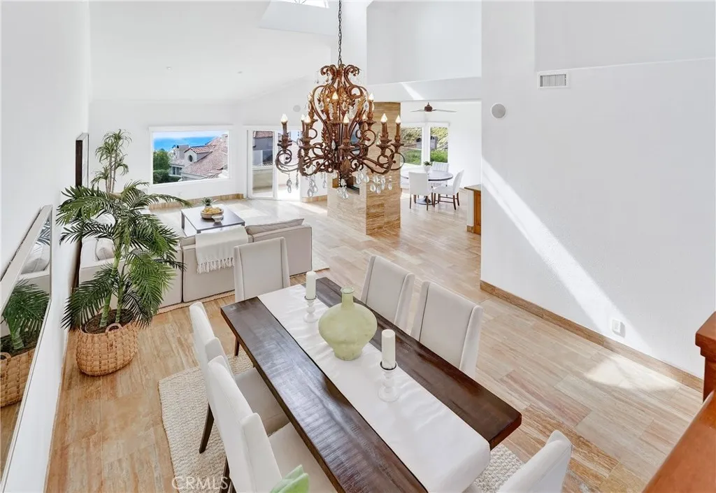 Experience refined living at 49 Marseille, capturing approximately 120 degrees of sweeping ocean and coastline views, including daily sunsets over Catalina Island, San Clemente Island, Long Beach Harbor and city lights, along with glimpses of the Montage coastline and white water shoreline. Set within the guard gated community of Laguna Sur with 24 hour attended security, this coastal residence features light filled interiors, soft neutral tones, and seamless indoor outdoor flow, creating an atmosphere of refined living enhanced by Calacatta marble finishes and timeless architectural details, including a sweeping wood staircase, hardwood flooring, crown molding, and dramatic cathedral ceilings. The modern kitchen with granite countertops and a center island opens to dedicated living and dining spaces framed by expansive windows and sliding glass doors. The main level includes an inviting living area and full bath, while upstairs offers two bedrooms connected by a Jack and Jill bath, plus a versatile bonus room. The lower level features a spacious primary suite with a fireplace, spa style bath, and private patio access. A private resort style backyard completes this exceptional offering of elegance, comfort, and elevated coastal design. With remarkable views and a premier location, this home captures the essence of Laguna Sur living.