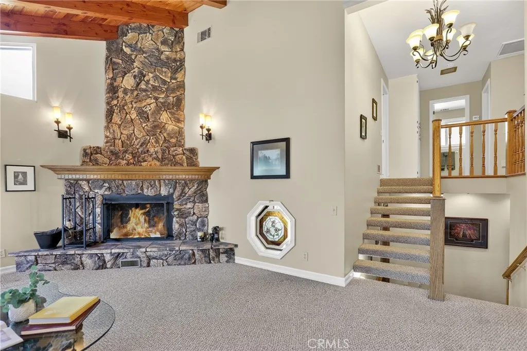 Location! Location! Location! Welcome to this beautifully situated 5-bedroom mountain retreat in the highly sought-after Tavern Bay neighborhood of Lake Arrowhead. Featuring a level driveway and a convenient 2-car garage, this home offers both ease of access and ample parking, including a level circular driveway—perfect for hosting family and friends. Step outside from the dining area onto a spacious patio, ideal for summer BBQs, morning coffee, or simply relaxing with a good book under the pines. Inside, the home boasts a generously sized kitchen and dining area complete with a brick fireplace, creating a warm and inviting space for gatherings. Just a few steps up, the light-filled living room welcomes you with an additional fireplace, offering the perfect place to unwind. Upstairs, you’ll find the primary bedroom along with two additional bedrooms and a fun bunk room—ideal for accommodating guests or creating lasting family memories. The lower level offers flexibility with a large family game room or optional fifth bedroom, providing extra space for entertainment or privacy. Designed with wellness in mind, the home also features a relaxing hot tub and sauna—your own private mountain spa experience. Out back, enjoy a charming yard with fruit trees, adding a touch of nature and seasonal delight. This home truly captures the essence of mountain living with comfort, space, and an unbeatable location near the lake. With lake rights, enjoy the opportunity to join the ALA and take a short, leisurely walk to Tavern Bay Beach Club—just minutes away for lakeside relaxation, swimming, fishing, kayaking, and scenic strolls along the beautiful lake trails. Don’t miss this exceptional opportunity to own in one of Lake Arrowhead’s most desirable neighborhoods! Seller will consider financing your purchase.