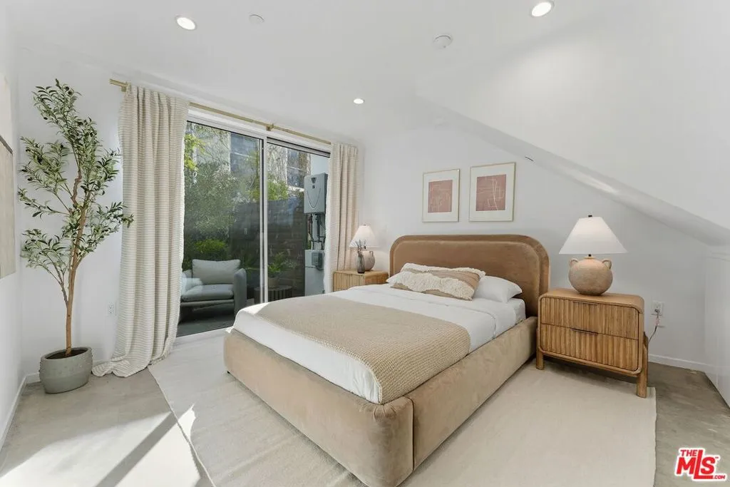 Welcome to a thoughtfully crafted, architect-designed modern residence in a boutique five-unit building completed in 2022. This home blends clean contemporary design with soaring ceilings, walls of glass, and an airy open-concept layout filled with natural light. The interiors feature a refined mix of concrete and hardwood flooring, a sleek designer kitchen with premium appliances, and curated finishes that feel both warm and modern. A light-filled skylight room adds architectural interest and flexibility ideal as a home office, creative studio, or serene retreat. The layout offers distinct yet connected living and entertaining spaces, while a private rooftop deck captures city views with an ocean backdrop perfect for sunset lounging or casual gatherings. Additional amenities include central HVAC, in-unit laundry, secure subterranean parking, and solar panels supporting energy-efficient living. Ideally located just minutes from Wilshire Boulevard, the beach, top dining, and everyday conveniences, this residence delivers a relaxed yet refined Santa Monica lifestyle with timeless architectural appeal.