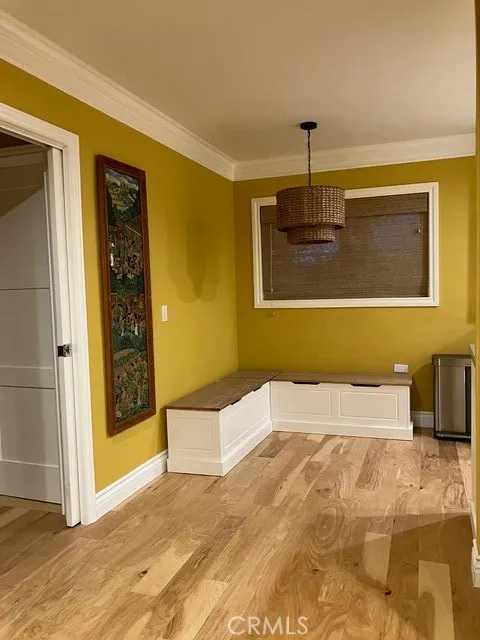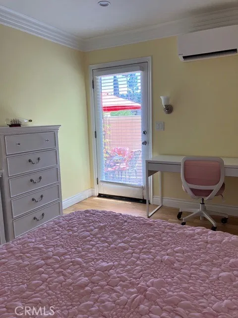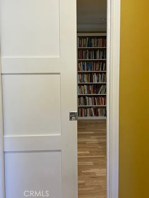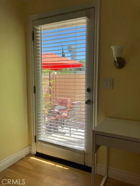Welcome to this iconic mid-century complex on 2.9 acres of tree-studded property with a pool and spa, and plenty of above-ground parking for residents and guests. The property is walking distance to the famous Aroma Tea & Coffee restaurant in Tujunga Village and The Garland Hotel, where you can bring your furry friends for outside dining. This unit is on the first floor and is highly decorated and move-in ready. Some of the features include hickory engineered wood flooring; completely remodeled bathroom in art deco black & white, including new valves and cartridges; a Daikin mini-split system; newer range and dishwasher; new solid-wood bedroom and bathroom doors, and pocket door with new slider system; famous Beverly Hills Hotel, Martinique wallpaper; new paint throughout; new baseboards; floor-to-ceiling, built-in bookcase; top down/bottom up shades in living, dining & bedroom; new water heater, all done since 2023. Additionally, this home has recessed lighting throughout; newer electrical sub-panel; triple crown moulding; and vinyl Milgard windows, including a garden window in the kitchen. The new owner will enjoy an ample patio with small area of astro-turf and will inherit 6 golden bamboo plants (if they choose) and a wood storage shed. There is a hose and bib inside the patio and backdoor access from the bedroom. There is also easy access to the designated tandem parking spaces for unloading groceries through the patio entrance and a peek-a-boo view of the east Hollywood Hills, which is quite lovely at night. This property is also conveniently located to several freeways and easy access to Hollywood, downtown, Dodger Stadium, and Universal Studios. Listing broker is also the property owner.