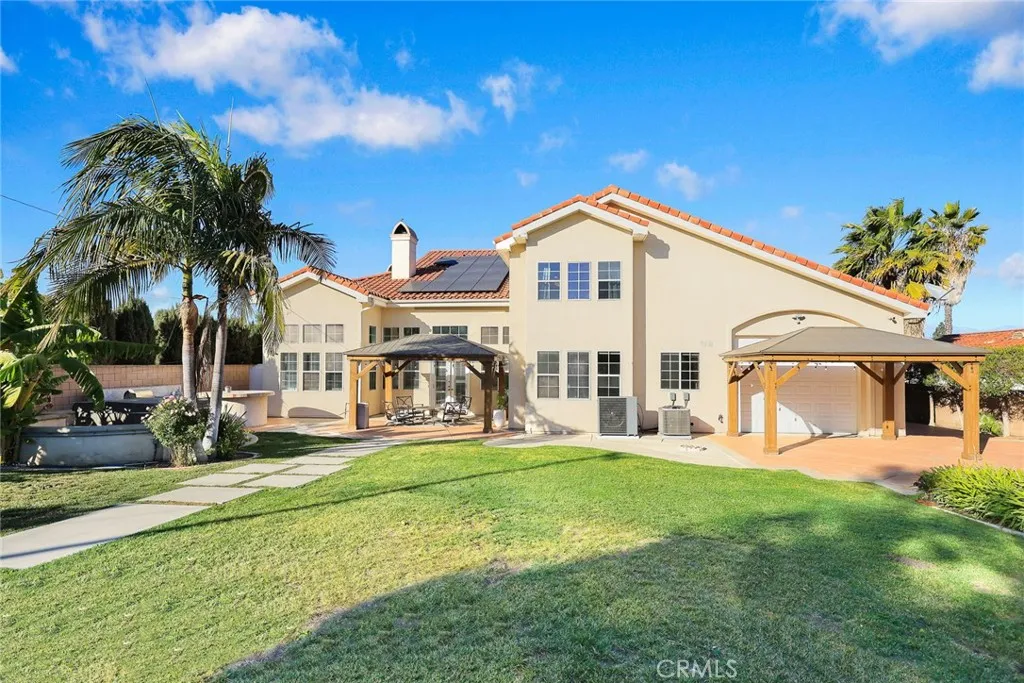 This beautifully constructed home, built in 2002, offers approximately 4,398 square feet of living space. Featuring 6 generously sized bedrooms and 5.5 bathrooms, this residence is ideal for large families or those who love to entertain. The thoughtfully designed layout includes three bedroom suites conveniently located on the main level, providing flexibility for multi-generational living or guest accommodations. The expansive living areas and a private primary suite offer both comfort and functionality. The home is equipped with solar, helping reduce electricity costs. Step outside to your private backyard retreat, complete with a hot tub—perfect for unwinding after a long day. The expansive outdoor BBQ area creates an ideal space for entertaining guests and enjoying outdoor living. Whether hosting gatherings or simply enjoying the peaceful surroundings, this backyard offers the perfect balance of comfort and style.